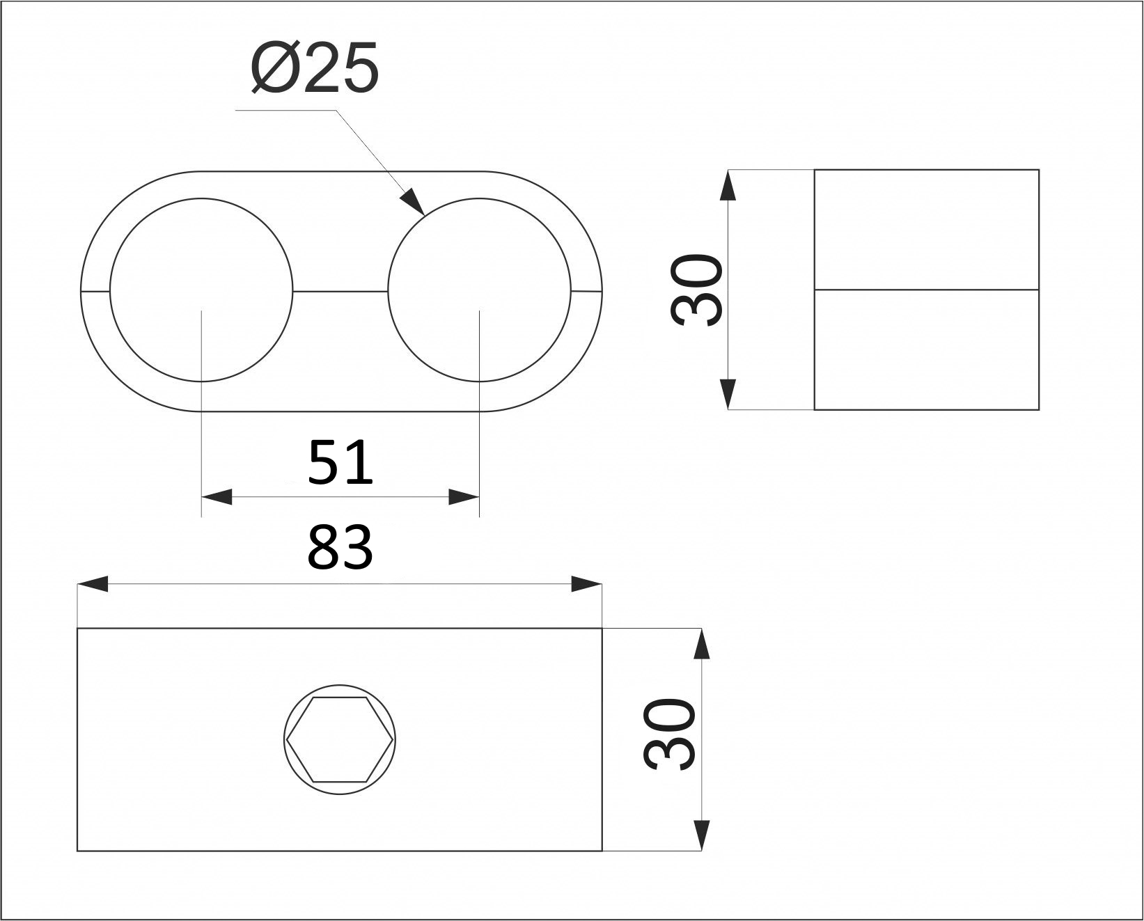 Используется для параллельного соединения двух труб d25, а также крепления к трубе d25 537А Вешалки