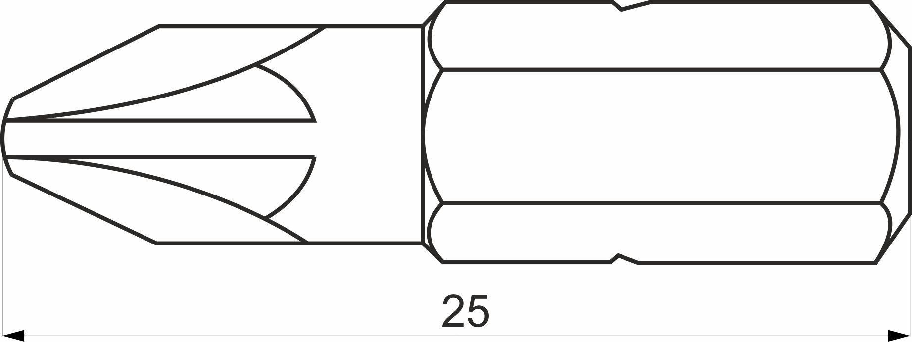 Бита 1/4 для шурупов PZ2 крестовая 25мм GROSS (упак.-10шт.)