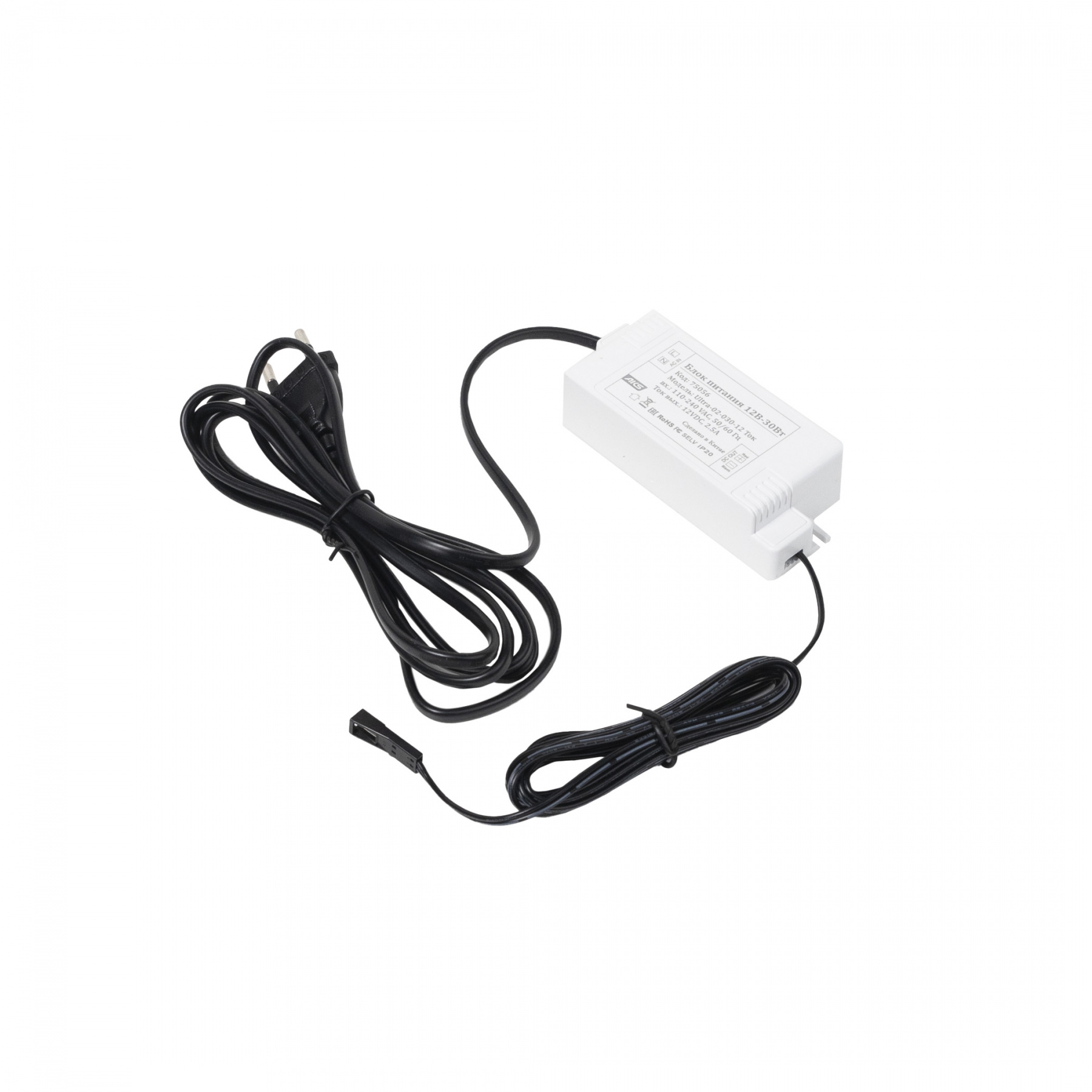 Блок питания Ultra 30W/12V с вилкой и миниконнектором (по 2 м), AKS
