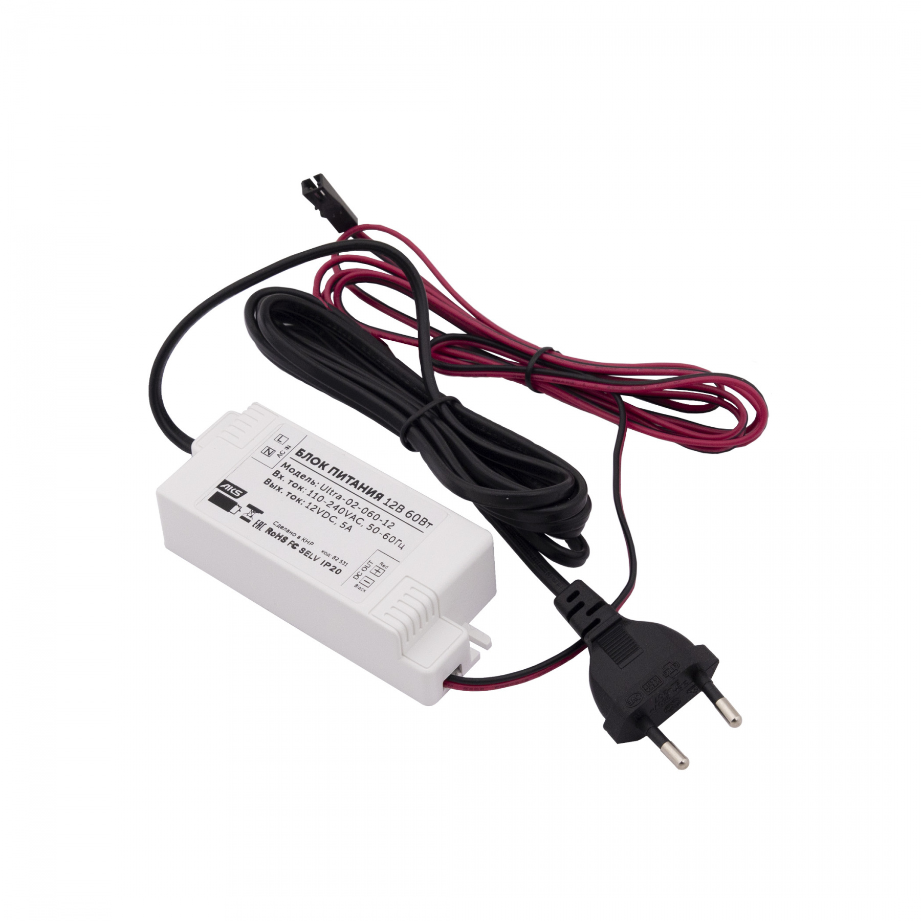 Блок питания Ultra 60W/12V с вилкой и миниконнектором (по 2 м), AKS