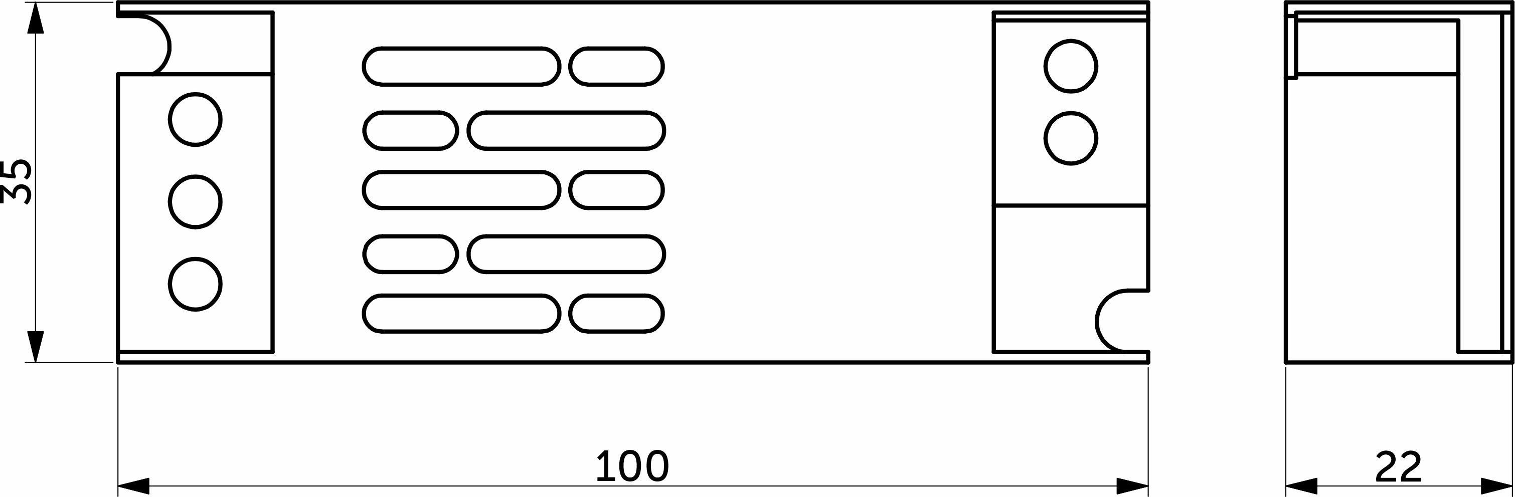 Размеры 100х35х22 мм, Вх.напряж. 176-264V AC, вых напряж. 12V DC, мощность 36Вт, сила тока 2,5A, степень защиты IP20.