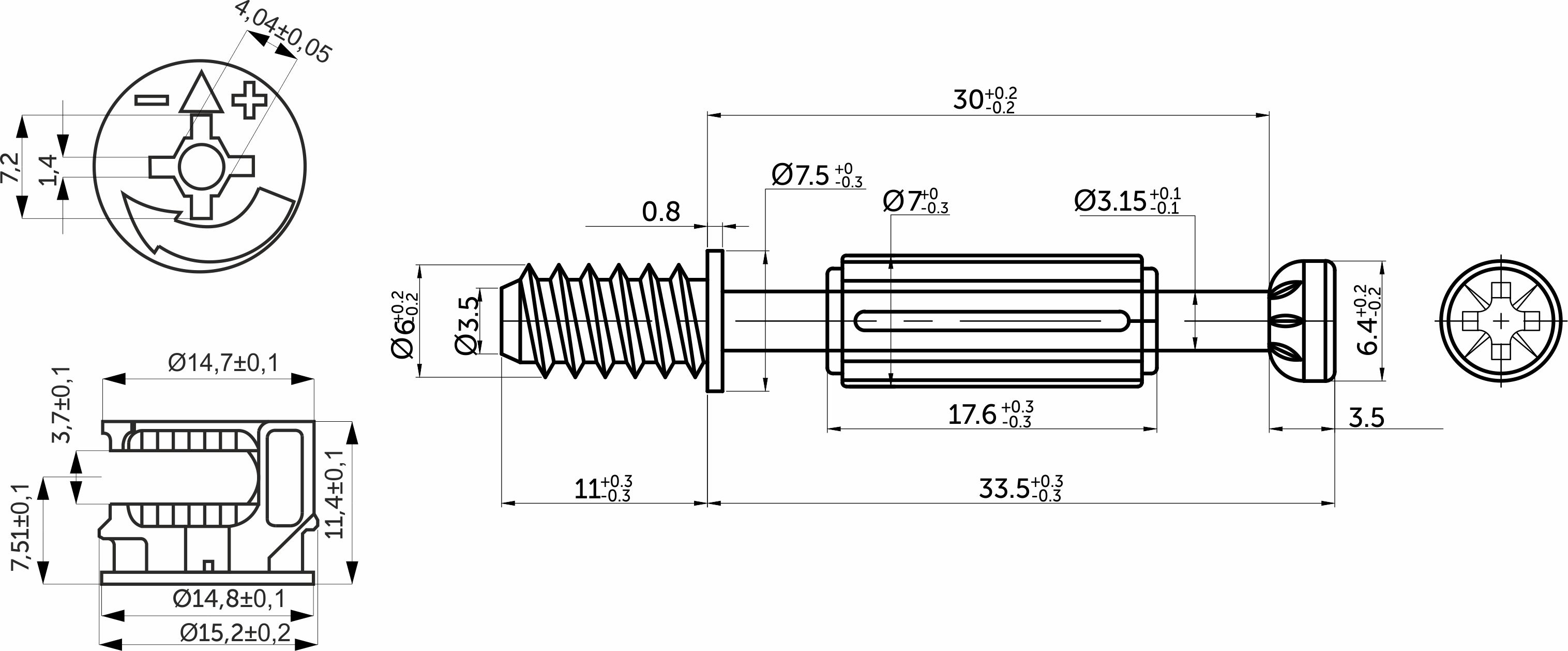 Эксцентрик 15x11,5 для плиты 16 мм + шток 7*34/6*11 (уп/10компл) AKS