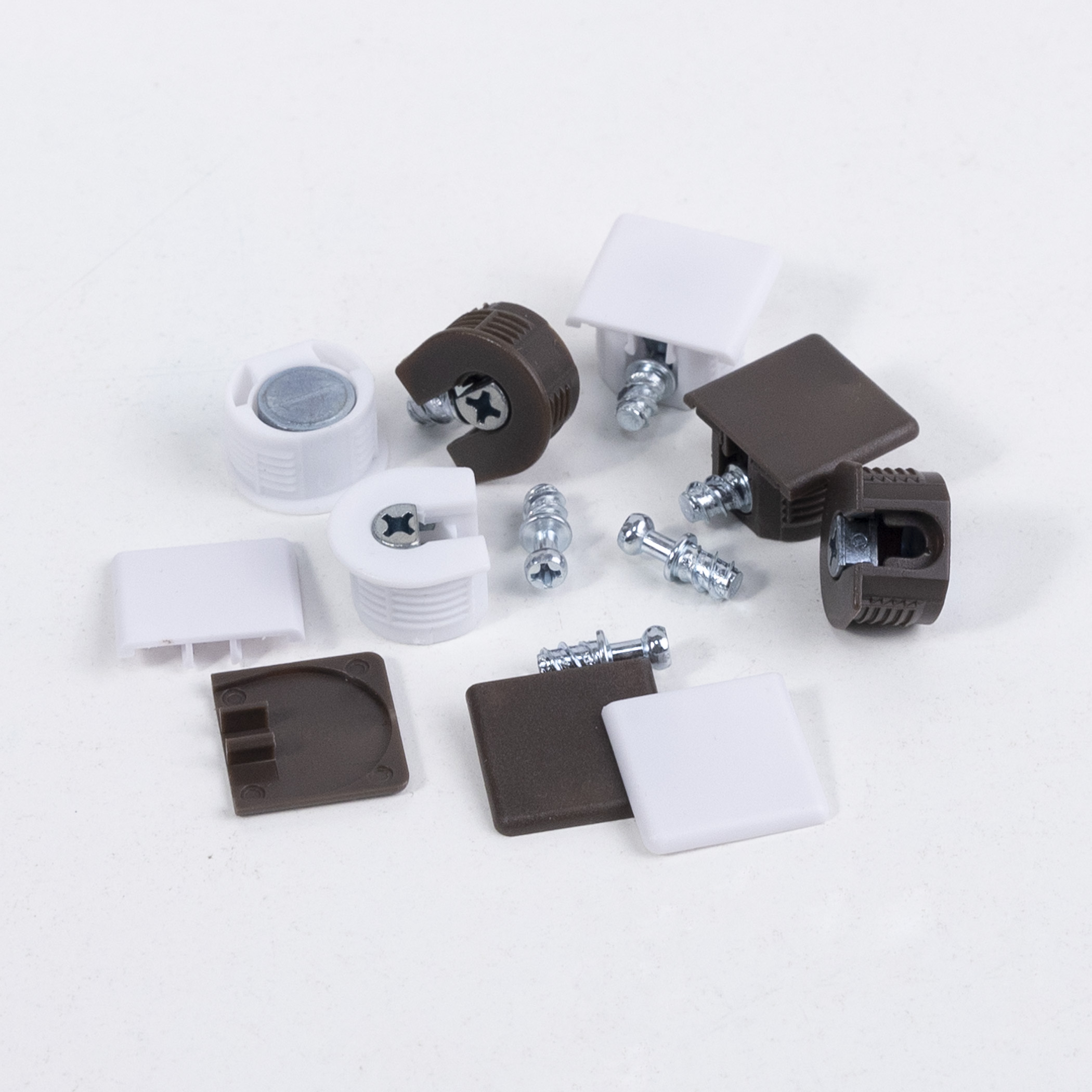 Эксцентриковая стяжка быстрого монтажа 20 мм коричневая + шток 6*8мм + заглушка (уп/100шт) AKS PLUS