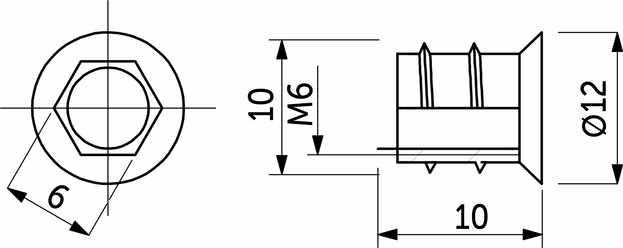 Гайка Rampa М6*10*10 с шестигран. углублением с буртиком (уп/ 1 тыс.шт) РП