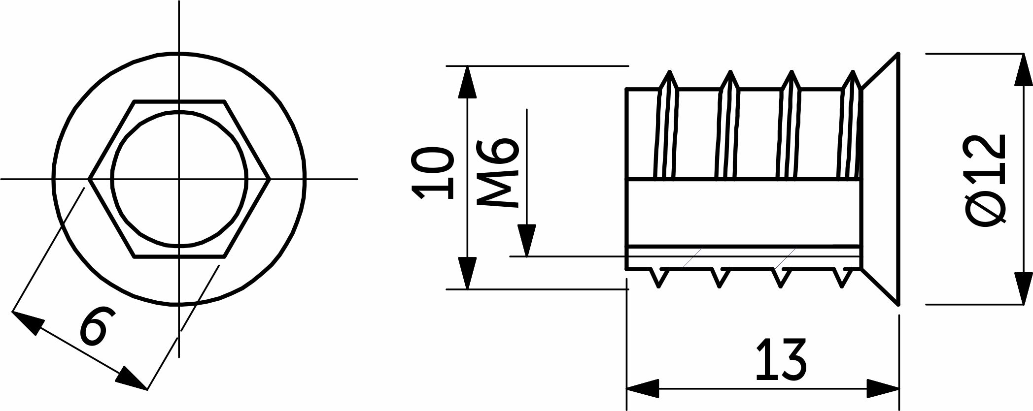 Гайка RAMPA с шестигранным углублением, с буртиком (футорка мебельная) может иметь внутреннюю резьбу - М4, М6 или М8, общую длину - 10 до 30 мм и шлиц под 6-гранный ключ соответствующего размера. Эта гайка представляет собой фитинг с метрической внутренней резьбой и наружной шурупной резьбой (EURO). Вкручивается в заранее подготовленное отверстие, обеспечивая надежное крепление устанавливаемых элементов (например, шток эксцентрика с метрической резьбой и др.).
