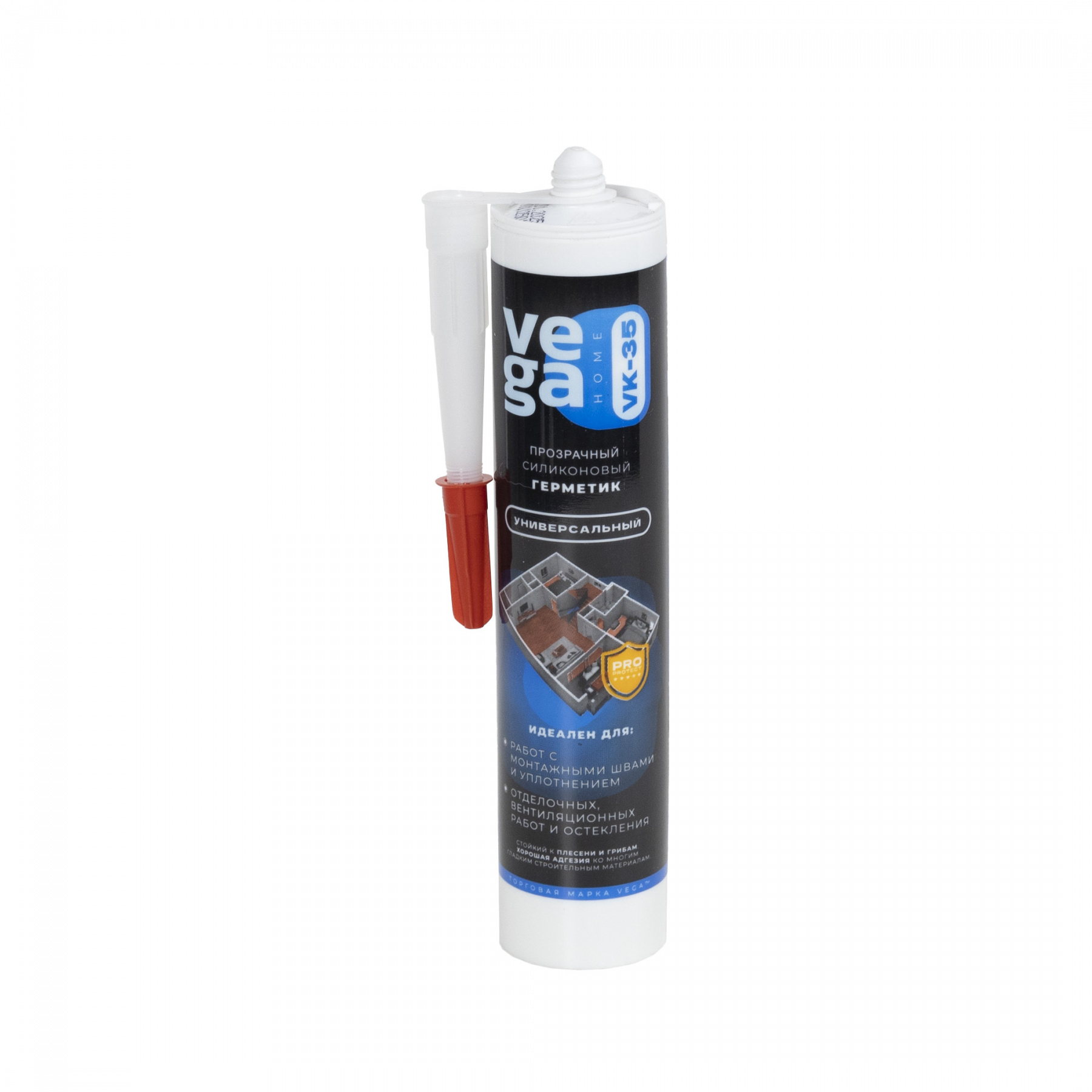 Герметик силиконовый прозрачный для металла и стекла (260мл) VEGA VK-35