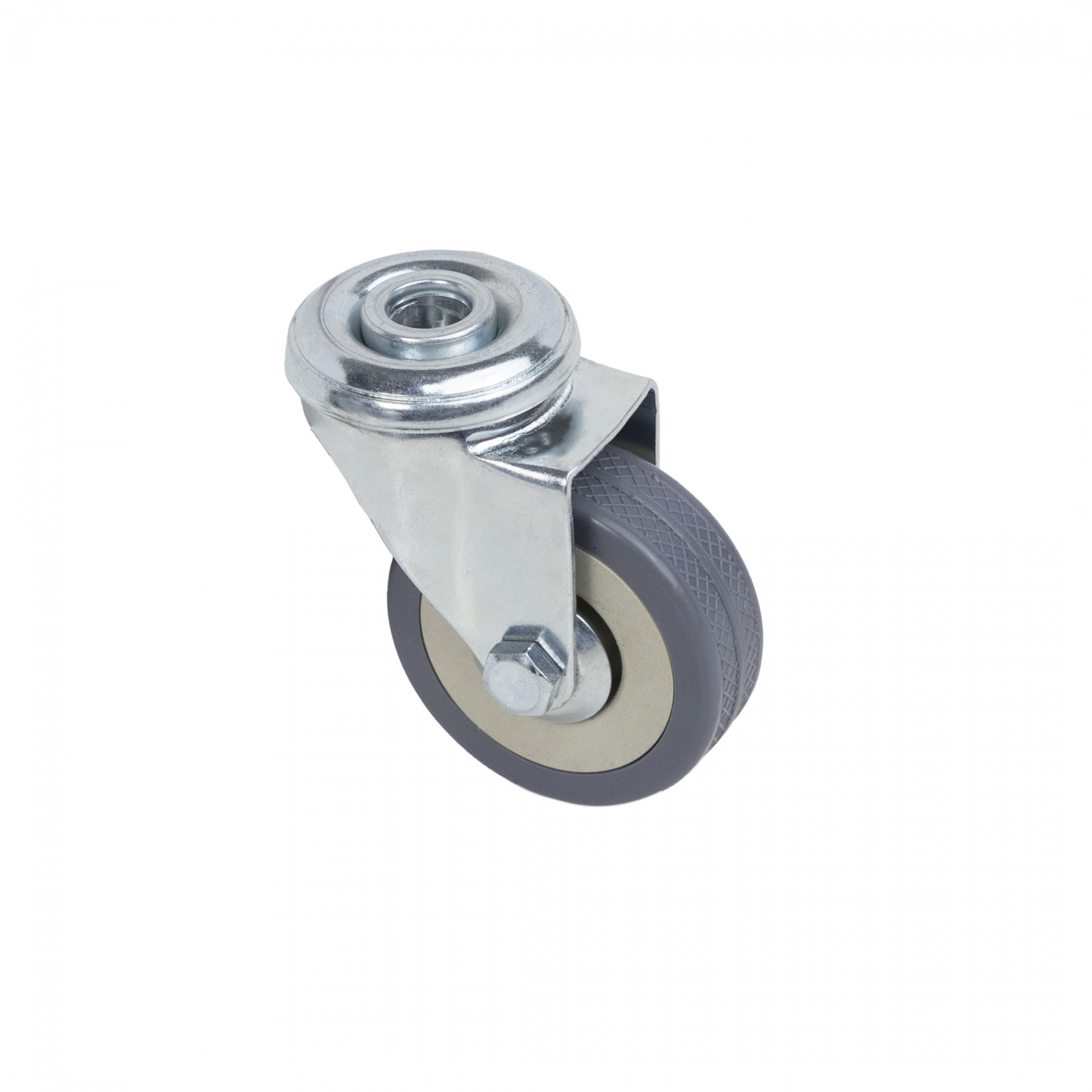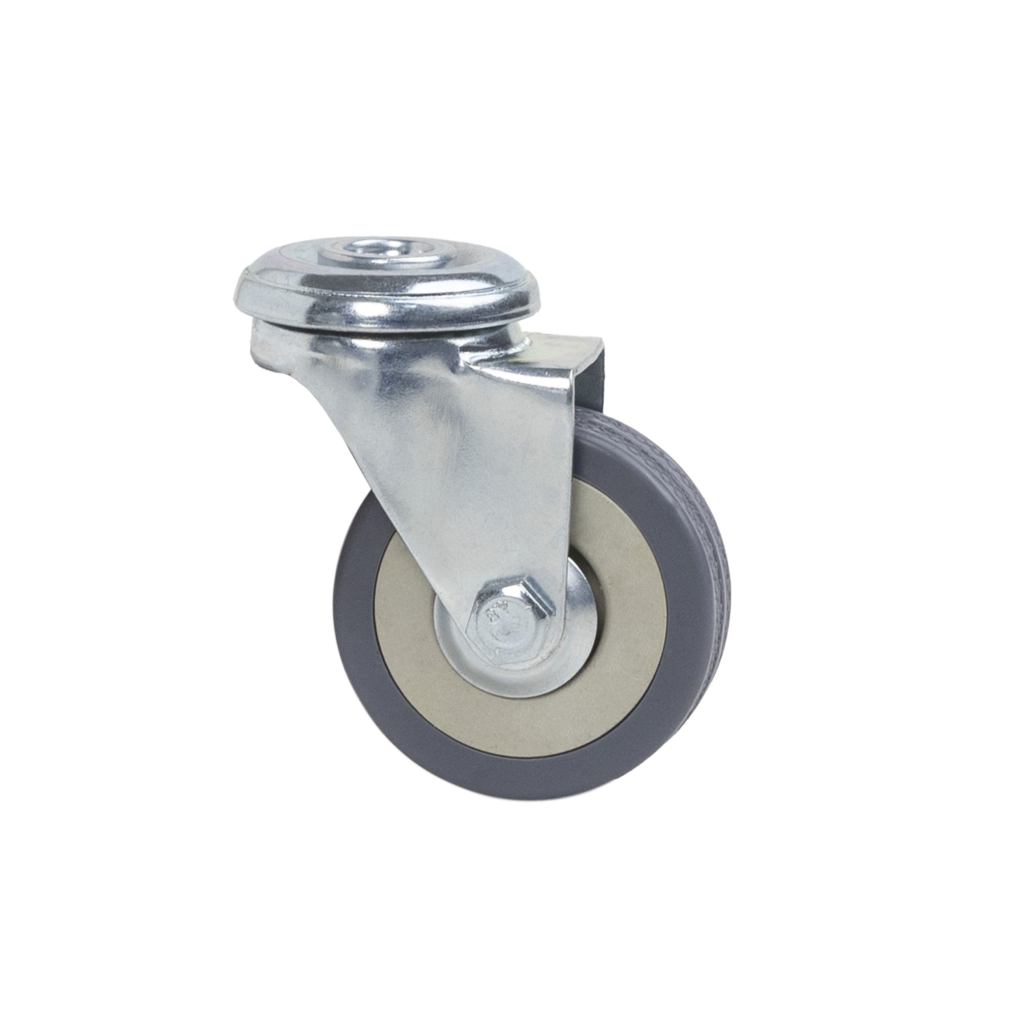 Колесо поворотное с резиновым ободом делает выдвижение более мягким и бесшумным. Используется для медицинской мебели и стеллажей. Рекомендуемая нагрузка на 1 колесо - до 20 кг. В комплект для монтажа можно приобрести болт М8 или М10