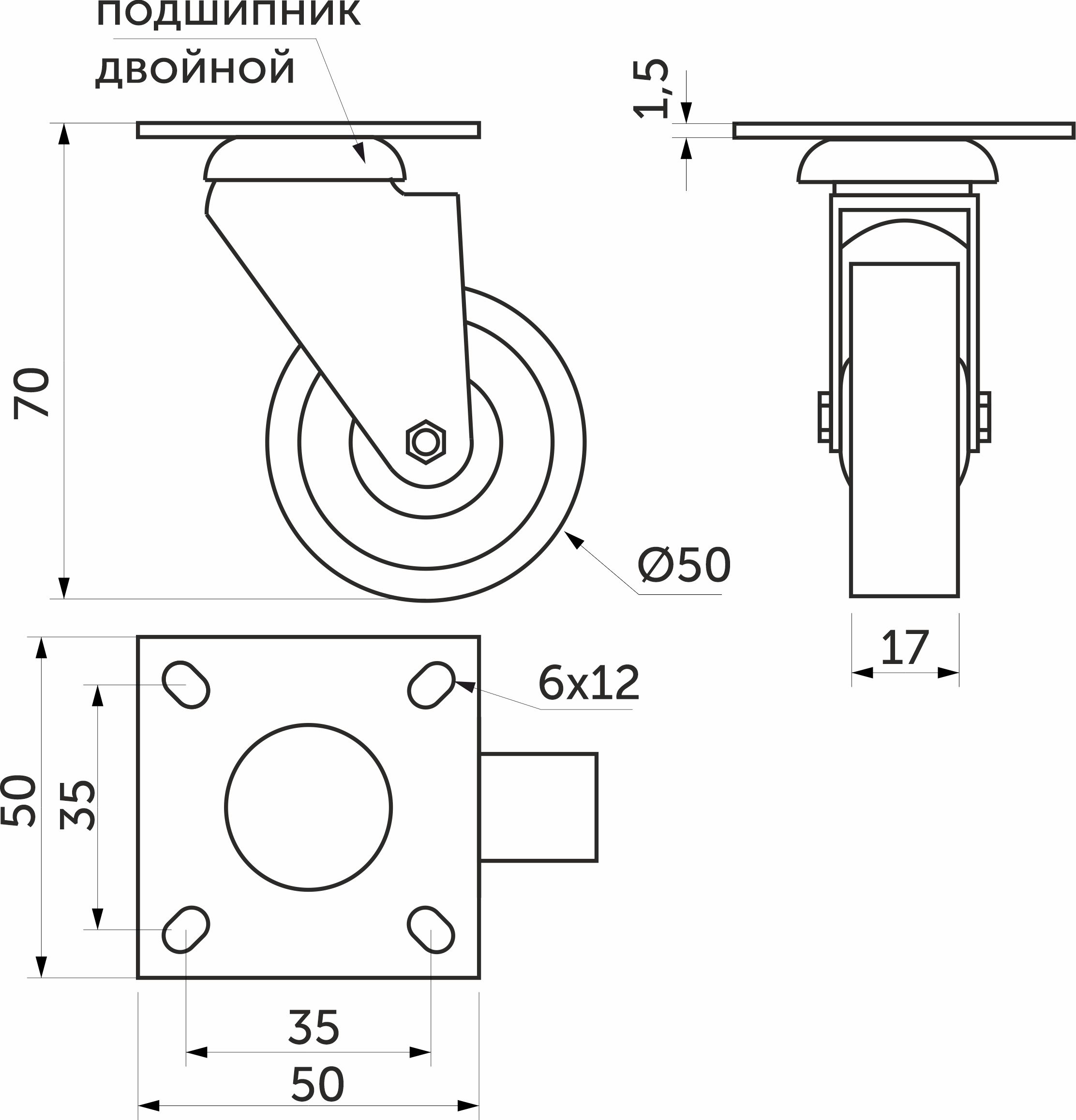 Колесо меб. c рез.ободом d30 h46 с площадкой, серый AKS