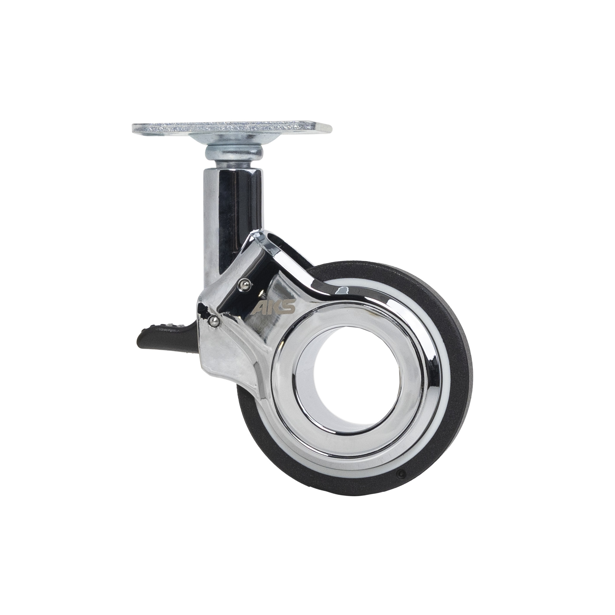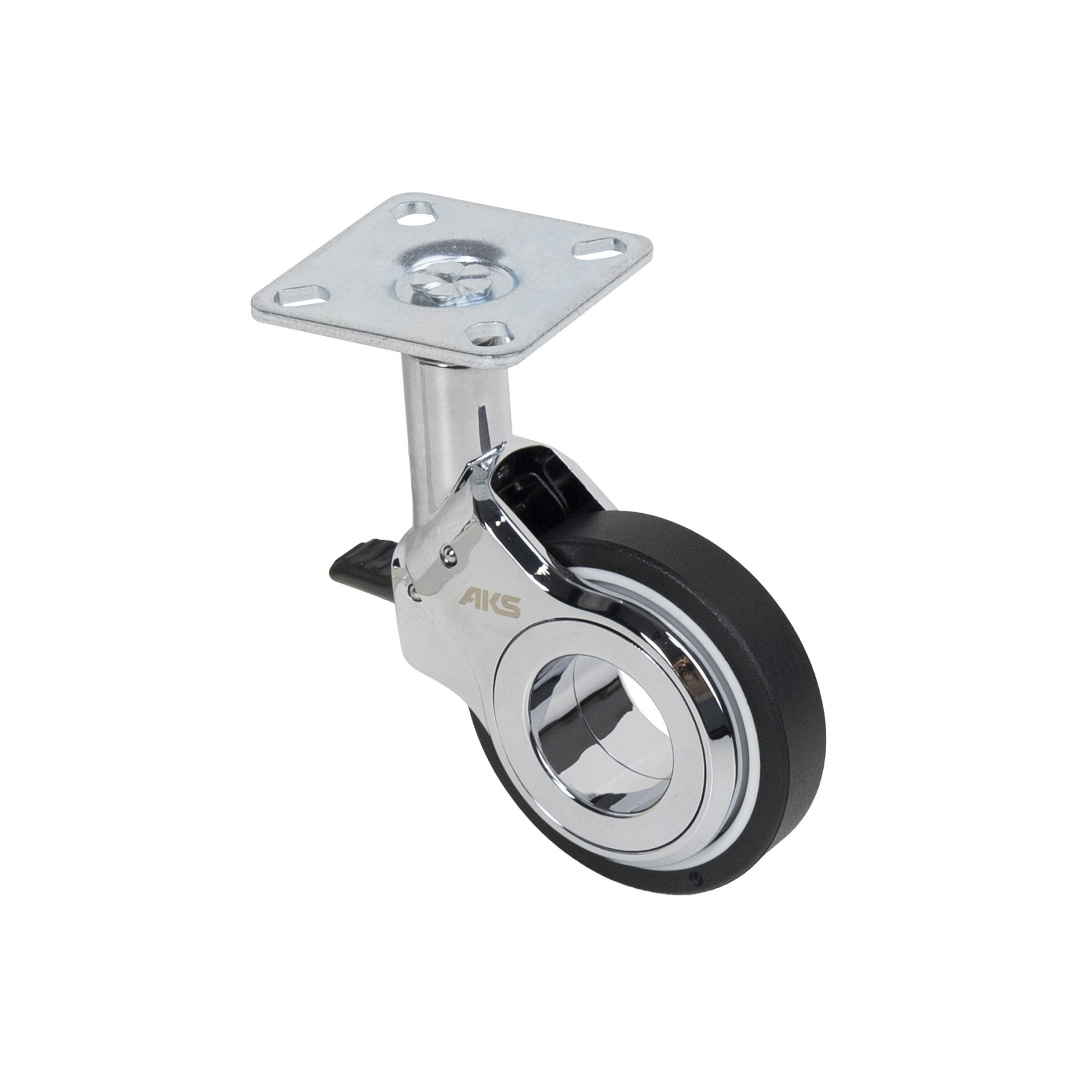 Колесо меб. GALAXY d60 h94 с площадкой с торм., хром/черный AKS