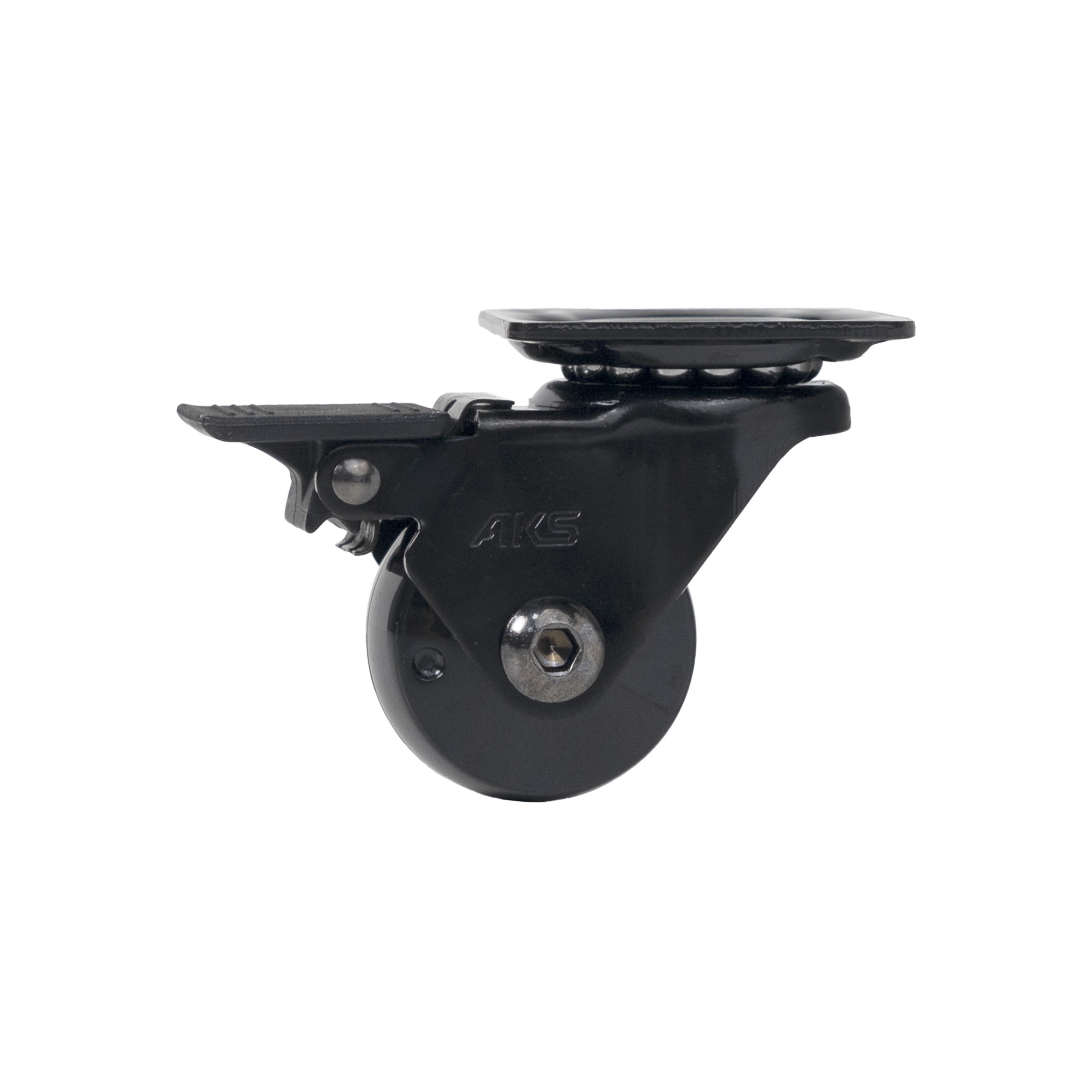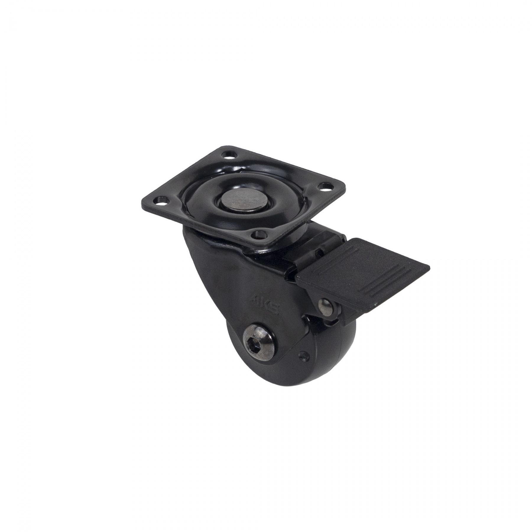 Колесо меб. пласт. d50 с площадкой с торм., черный AKS