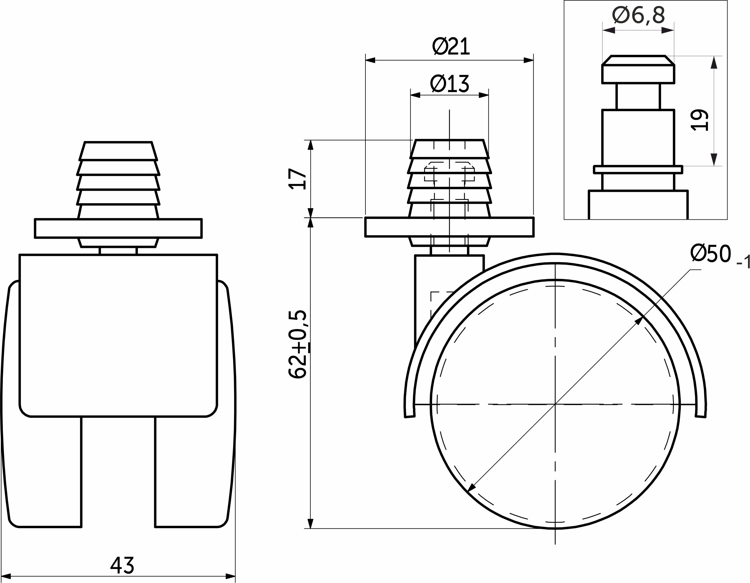 Колесо меб. пласт. d50 со штоком и втулкой, черный AKS