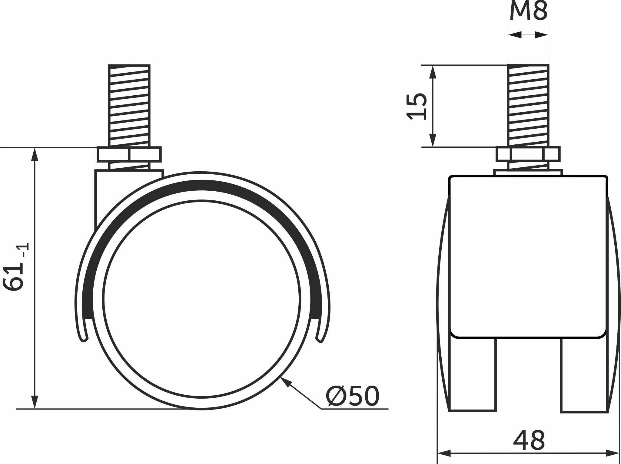 Колесо меб. пласт. FURNI d50 с винтом M8, черный AKS