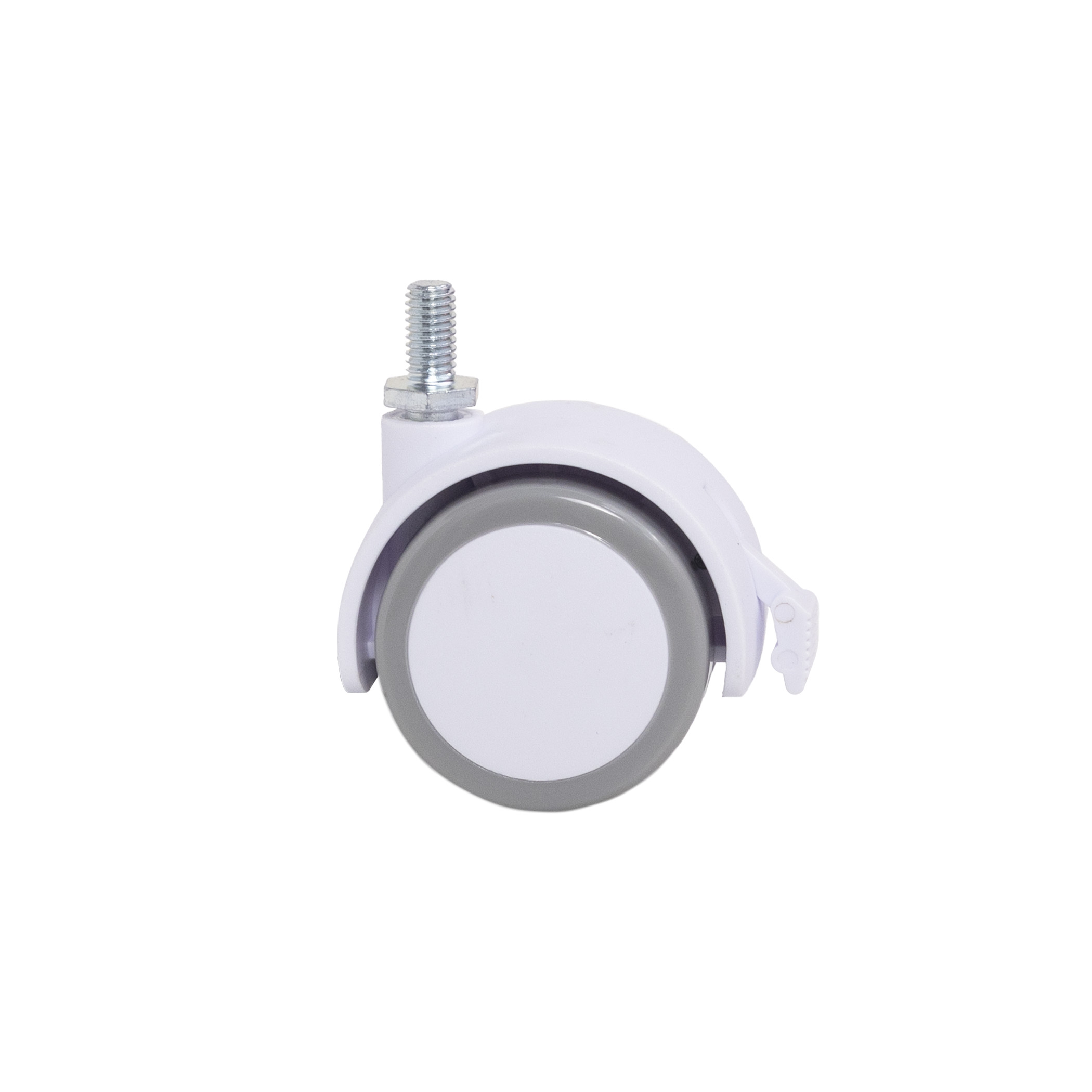 Колесо меб. пласт. FURNI d50 с винтом M8 с торм., белый/серый AKS