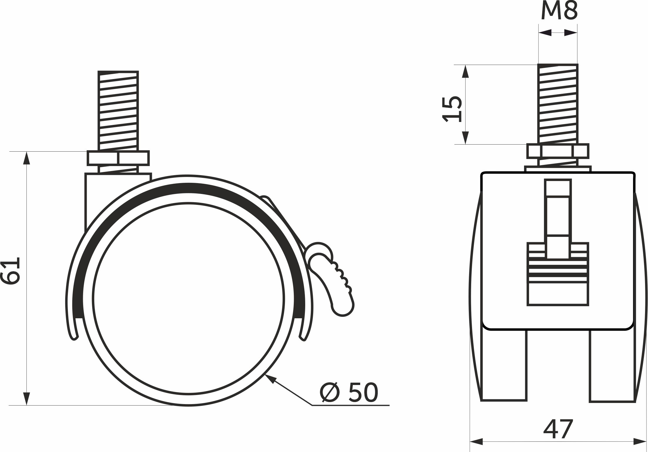 Колесо меб. пласт. FURNI d50 с винтом M8 с торм., черный AKS