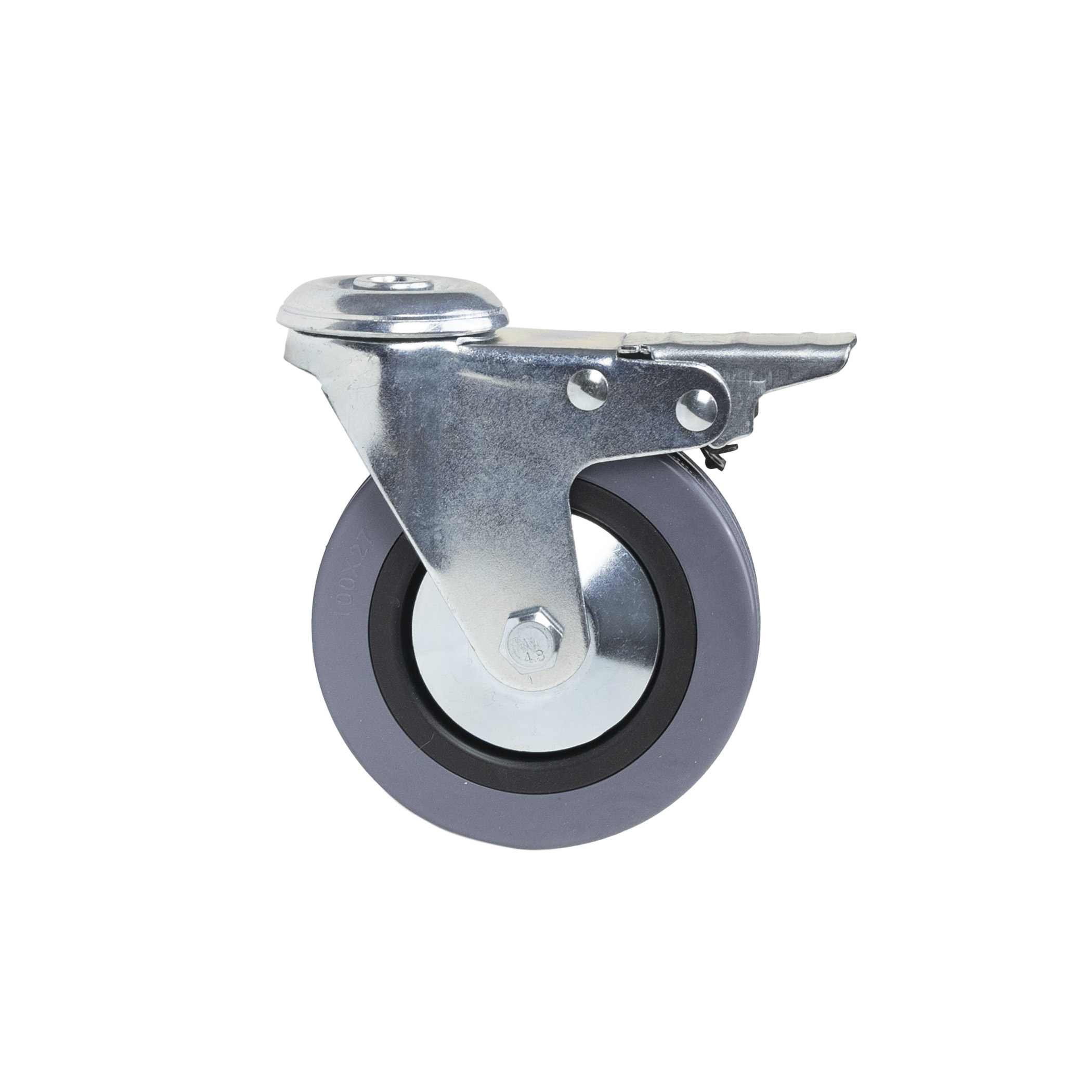 Колесо меб. TECH d100 h128 под винт М10 с торм., серый AKS