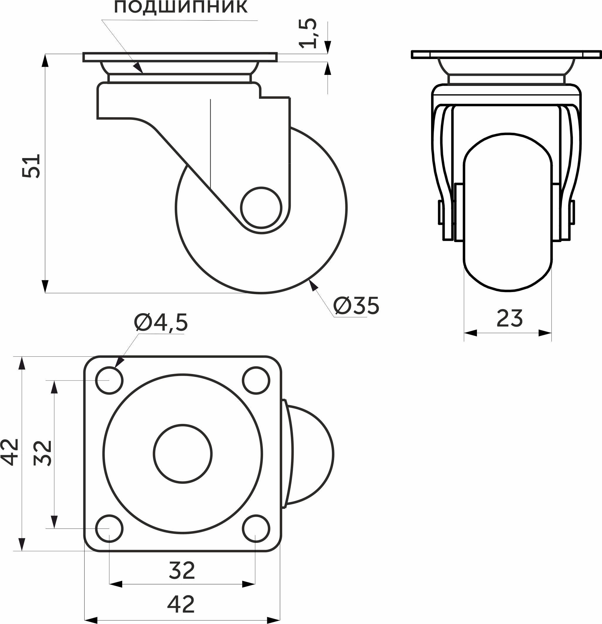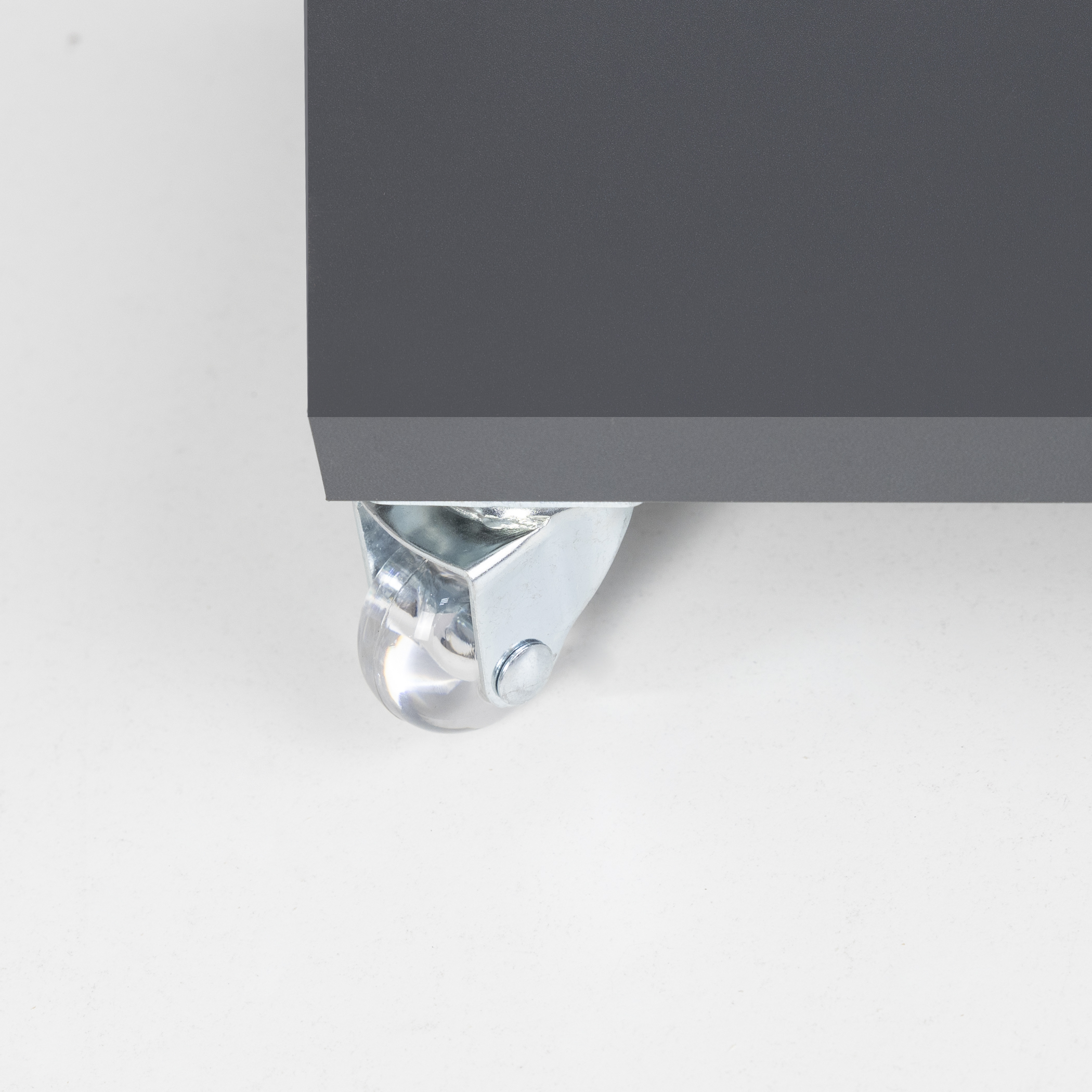 Колесо поворотное с силиконовым ободом делает выдвижение более мягким и бесшумным, не оставляет следов на полу. Рекомендуемая статическая нагрузка на 1 колесо - до 30 кг.