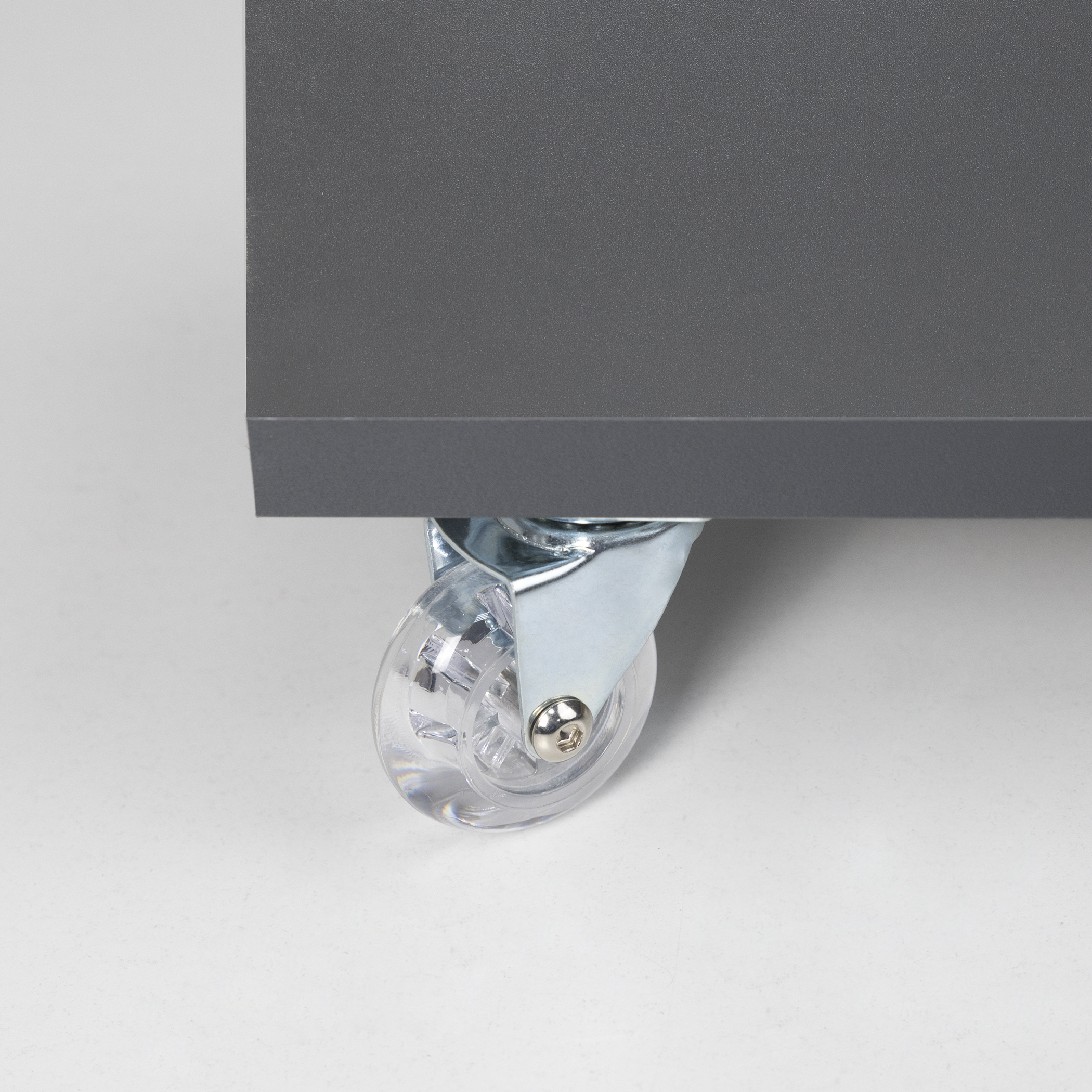 Колесо поворотное с силиконовым ободом делает выдвижение более мягким и бесшумным, не оставляет следов на полу. Рекомендуемая статическая нагрузка на 1 колесо - до 40 кг.