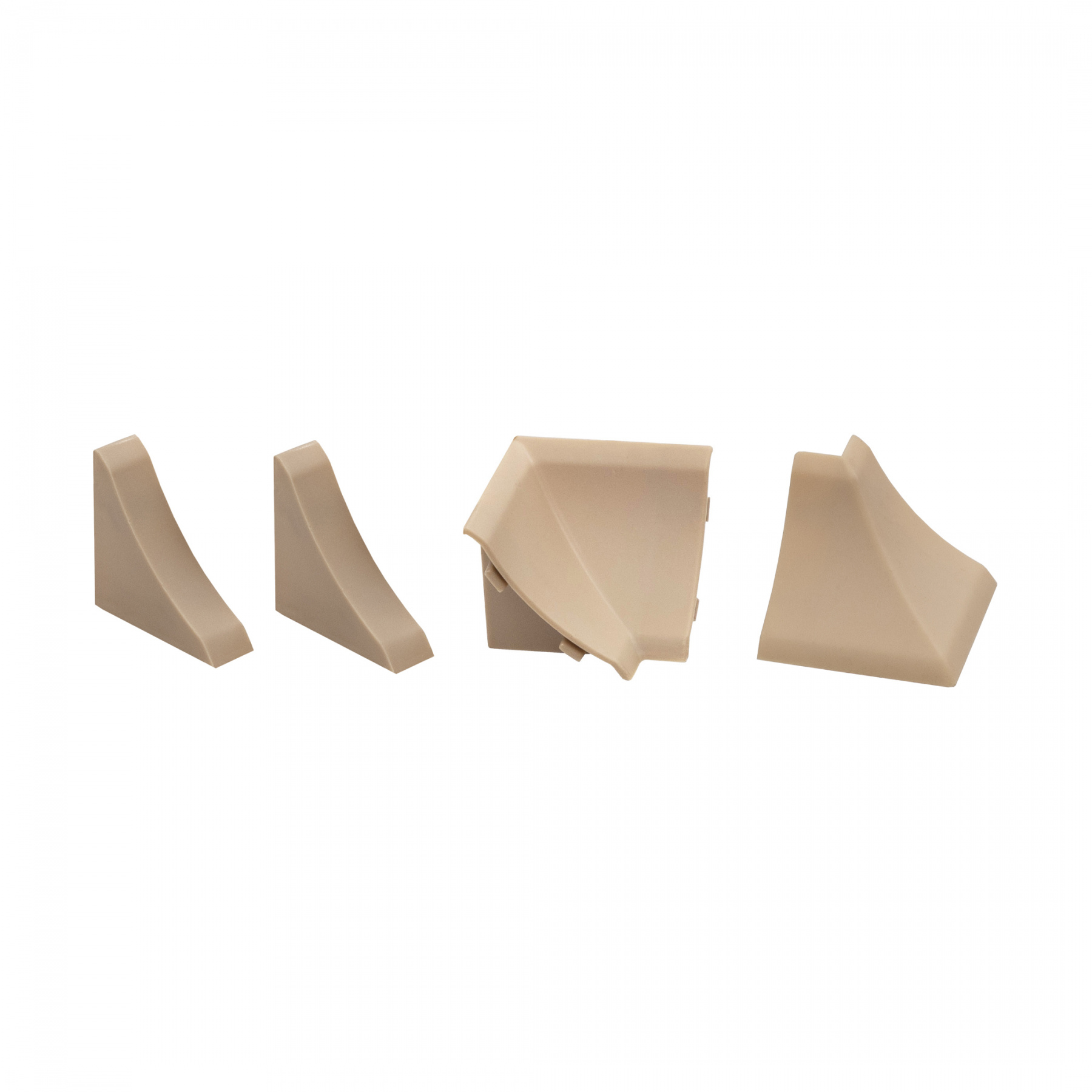 В комплект входят правая и левая заглушки, наружный и внутренний угол. Заглушка является декоративным элементом. Завершает планку плинтуса и скрывает стыки и срезы. Выполнена из прочного ПВХ, устойчива к механическим повреждениям. Угол также является декоративным элементом. Используется для соединения плинтусов в местах соприкосновения по внешним углам. Выполнен из прочного ПВХ и устойчив к механическим повреждениям.