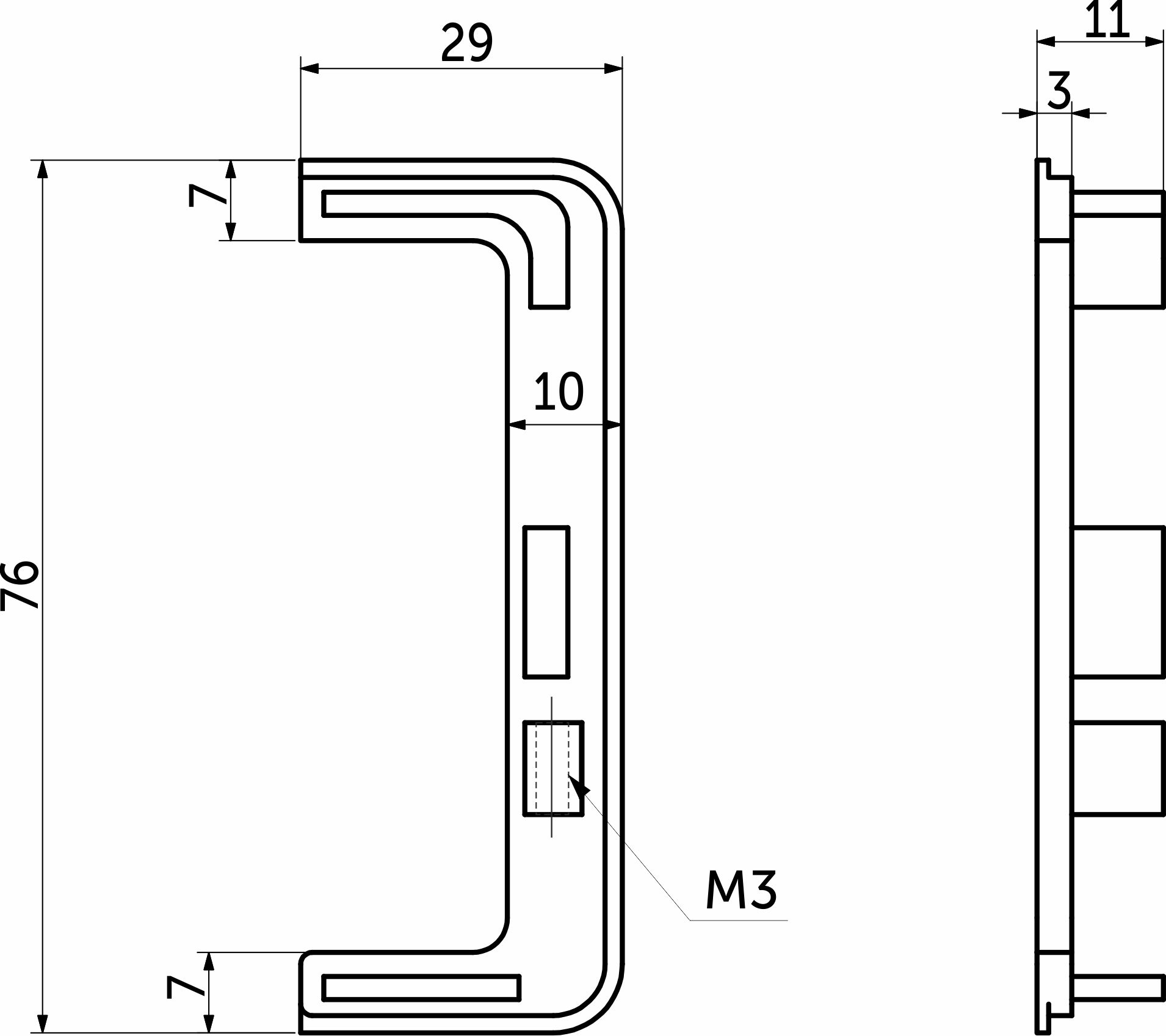 Комплект заглушек металлич. к профилю Gola, С-образных (левая+правая) серебро 3 AKS