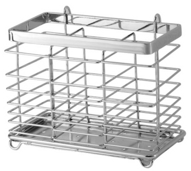 Корзина на релинг предназначена для размещения столовых приборов в вертикальном положении. Может рамещаться на релинговой трубе или располагаться на поверхности столешницы.