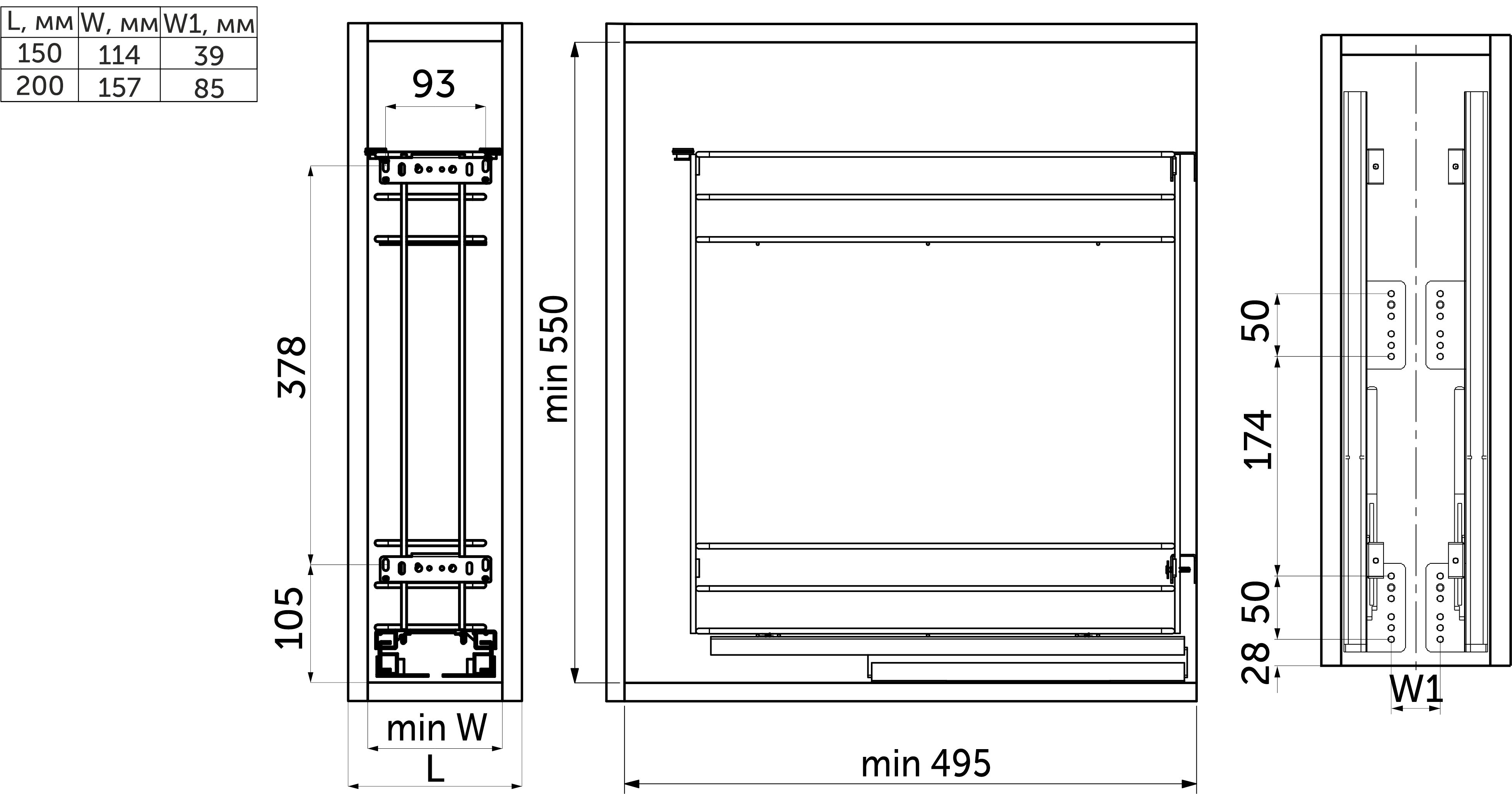 Выдвижная корзина-карго 150 крепл.боковое/универс. б/н, эф.хрома WIEXPOL