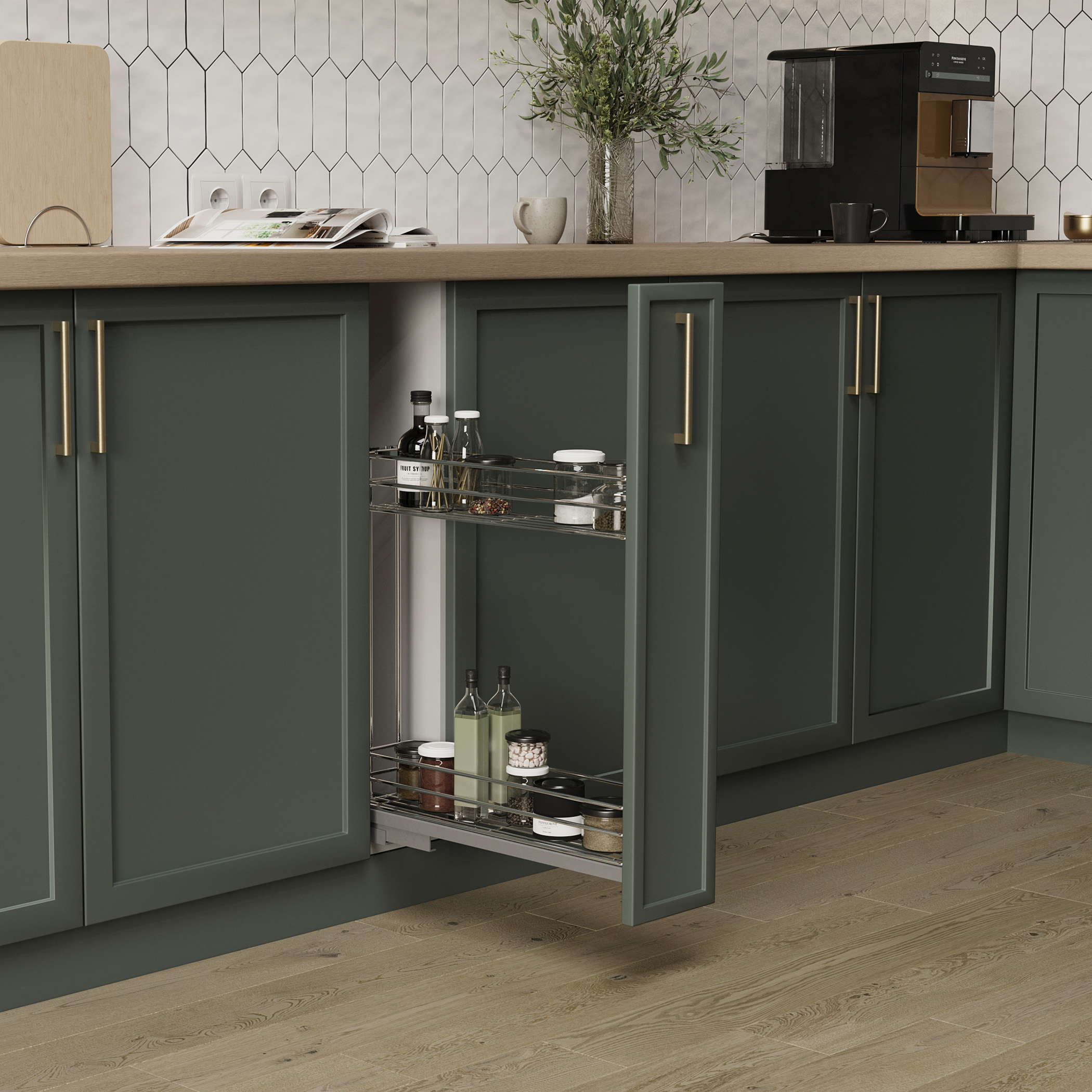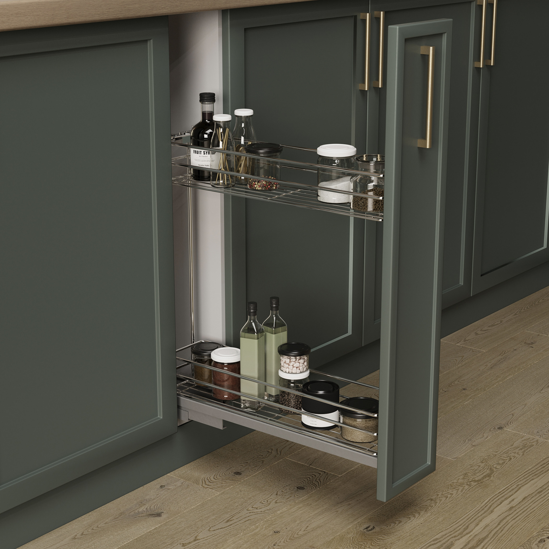 Качественное карго нижнего крепления. В комплект входят: выдвижная 2-х ярусная корзина, комплект направляющих скрытого монтажа с доводчиком, крепления к фасаду. В комплект карго на 150 и 200 ящики входят стабилизирующие ролики, которые дают большую устойчивость корзине. С 3D-регулировкой.