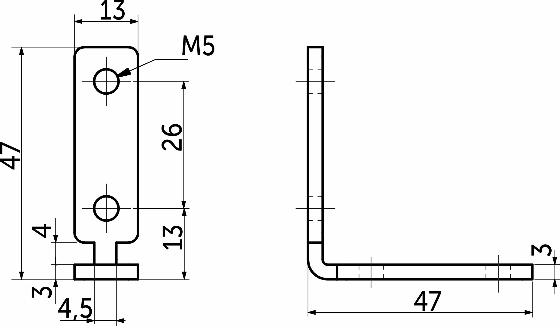Крепление металлическое для профиля GOLA L-образный. Материал сталь, цвет - цинк, длина стороны уголка - 47мм.
