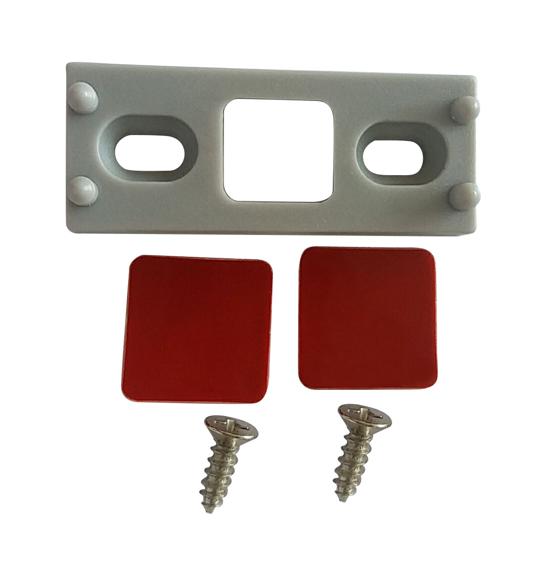 Используется с накладкой для петель. Крепление к ДСП - 1шт., саморез - 2шт., скотч двухсторонний - 2шт.