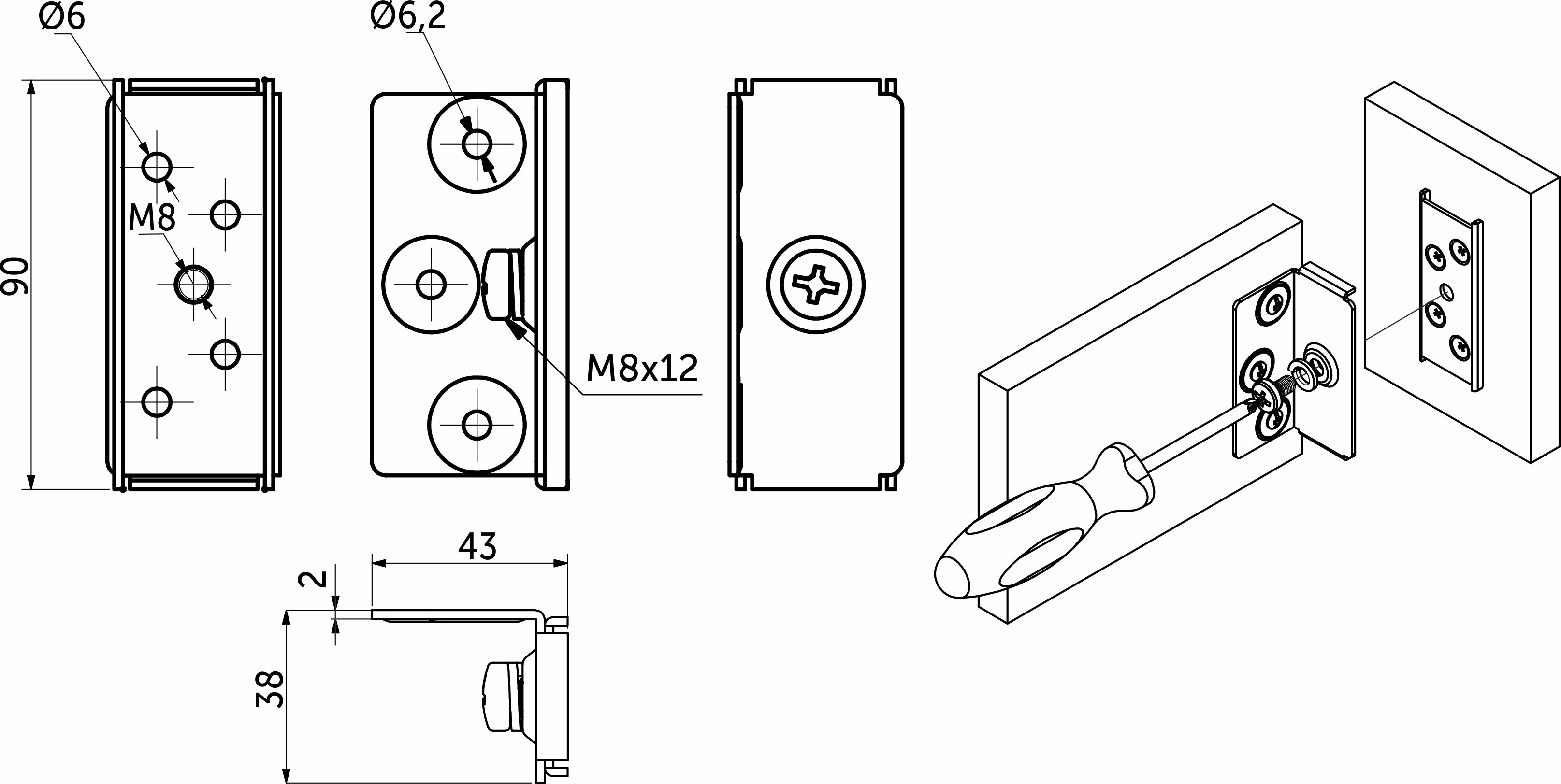 Кроватная стяжка угловая СБ служит для крепления царг кровати (боковых планок) к изголовью и изножью кровати. Данная стяжка состоит из трех элементов - планки, которая, как правило, крепится к изголовью либо изножью, крепежного уголка, который крепится к царгам и соединительного винта. Данное соединение позволяет многократно производить монтаж и демонтаж кровати без потери качества и надежности соединения.