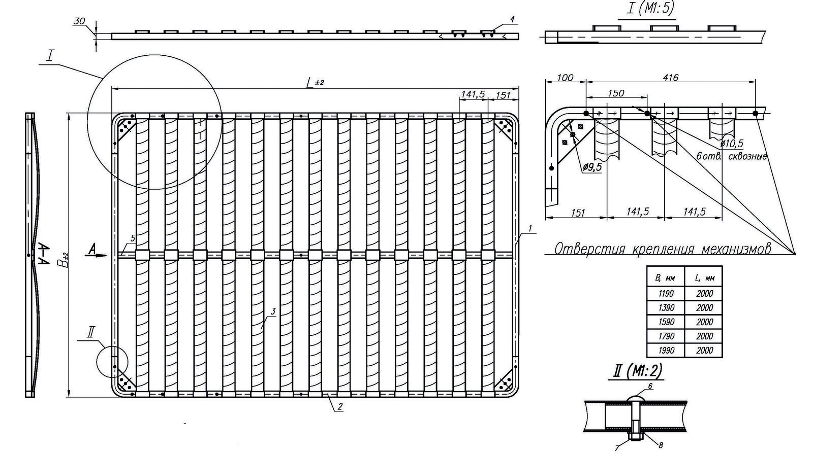 Основание под матрас 1600x2000мм ЭКОНОМ разборное BY (с опорами L-250мм)