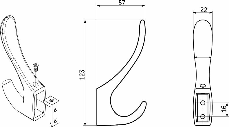 Этот крючок отличается утонченными линиями и изящным дизайном, придавая ему особую привлекательность и шарм. Металлический двухрожковый крючок. Подходит для использования в ванных и гардеробных комнатах. Его гладкая поверхность и аккуратные изгибы обеспечивают не только эстетическое удовольствие, но и удобство в использовании, предотвращая зацепление и повреждение одежды и аксессуаров. Материал - цинк-алюминий. Цвет - брашированное золото. Крепление к поверхности с помощью планки. В комплекте: дюбель 6х28 - 2 шт, шуруп 4х22 - 2 шт, планка для крепления. Упаковка: Пакет ПЭ запаянный, защитная foam-упаковка, винты в пакете из ПЭ. Высота 123мм, ширина 57мм, длина 22мм, расстояние между отверстиями 16мм, диаметр отверстия 4мм. Для создания целостной композиции в этой коллекции так же представлены крючок ROMA трехрожковый.