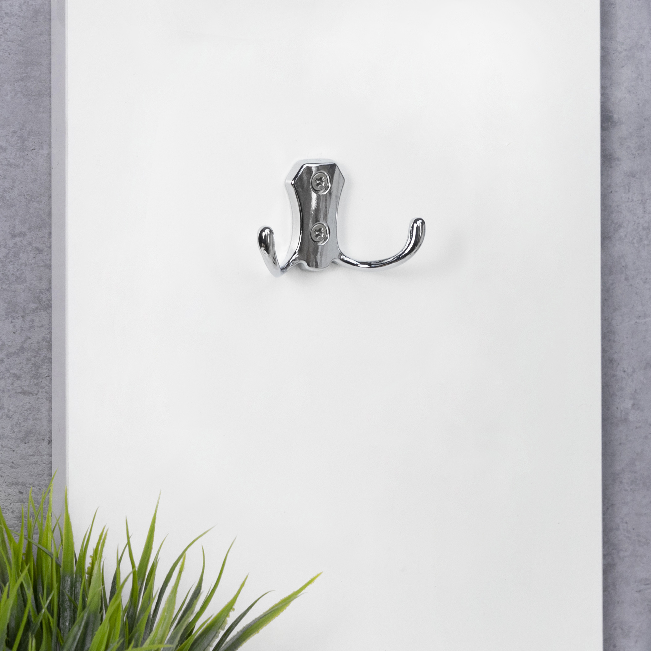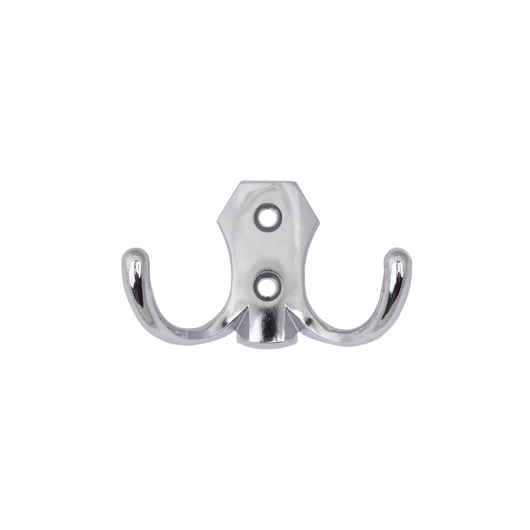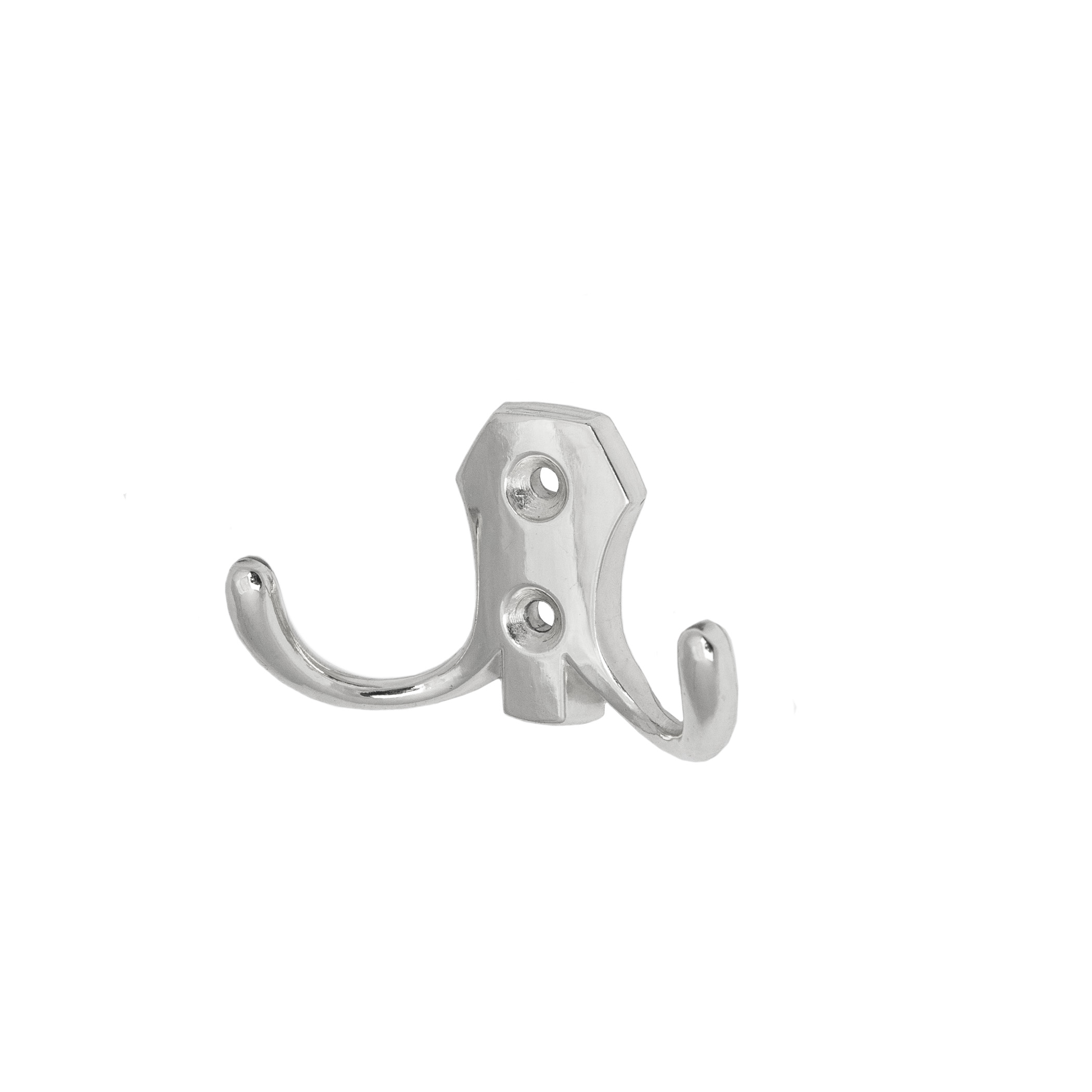 Двухрожковый металлический настенный крючок. Цвет хром. Материал - цинк-алюминий.