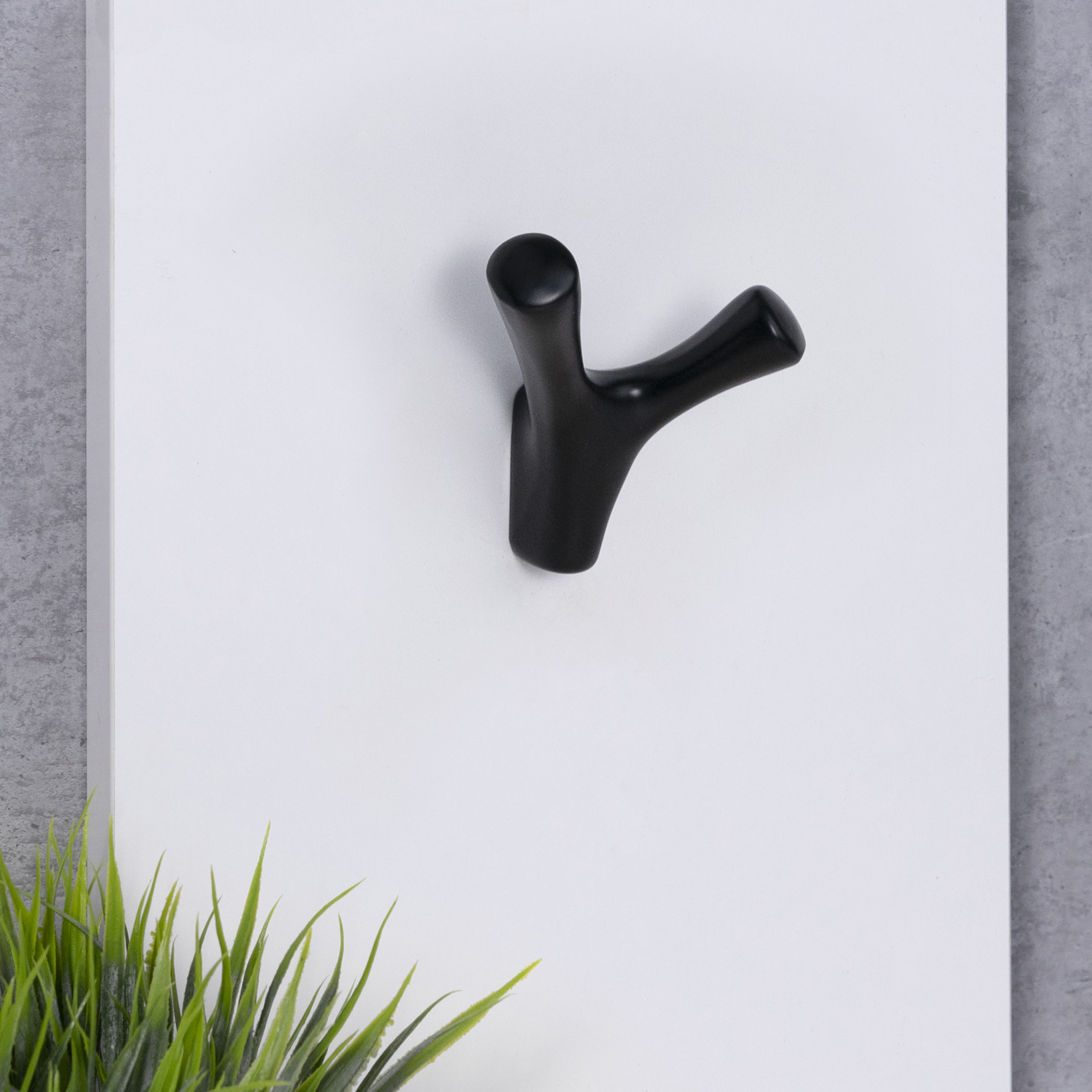 Крючок меб. двухрожковый мет. OMEGA черный матовый AKS