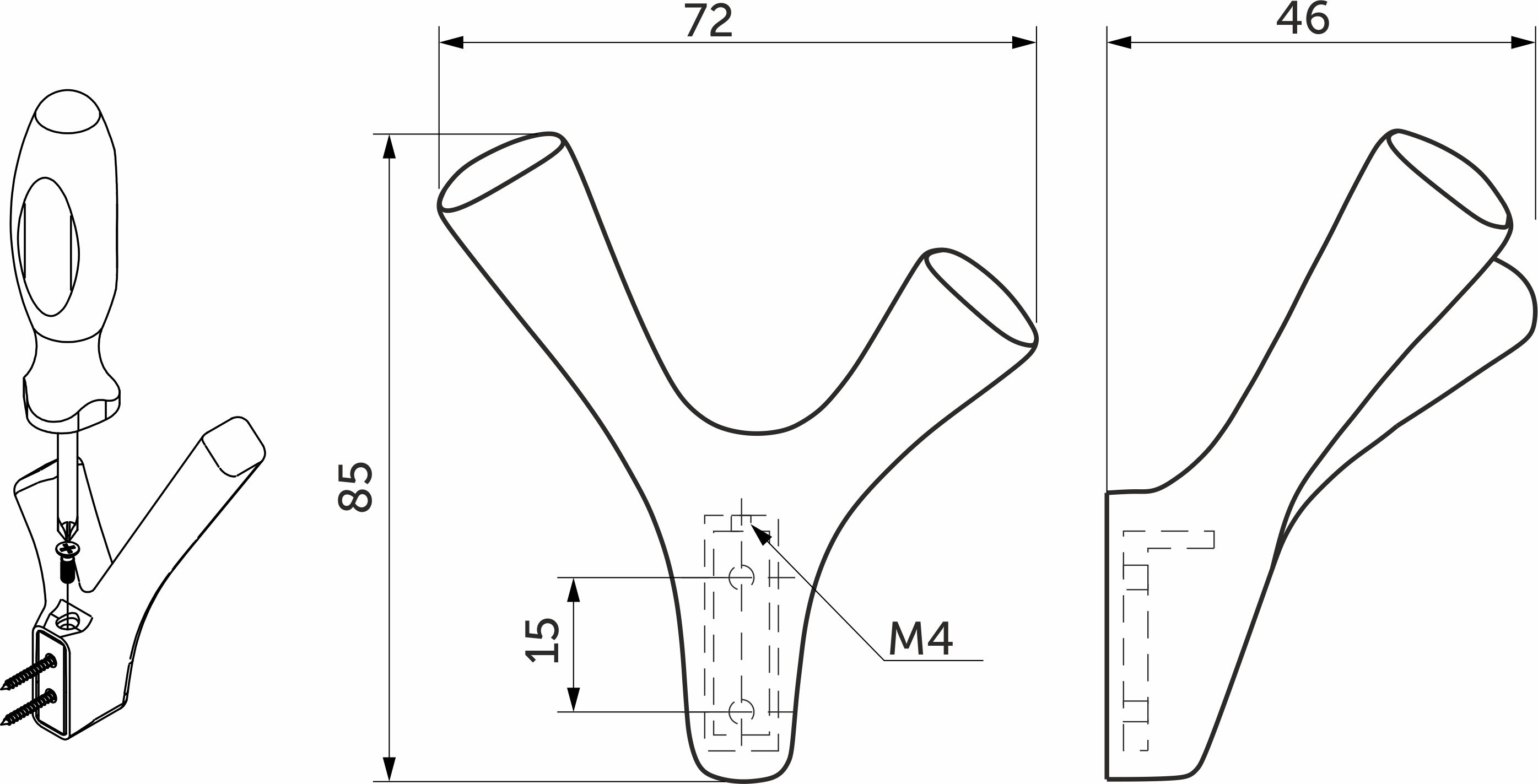 Этот крючок будто бы создан специально для любителей необычных форм в лицевой фурнитуре. Стильный и надежный крючок, который расставит акценты в вашем интерьере.