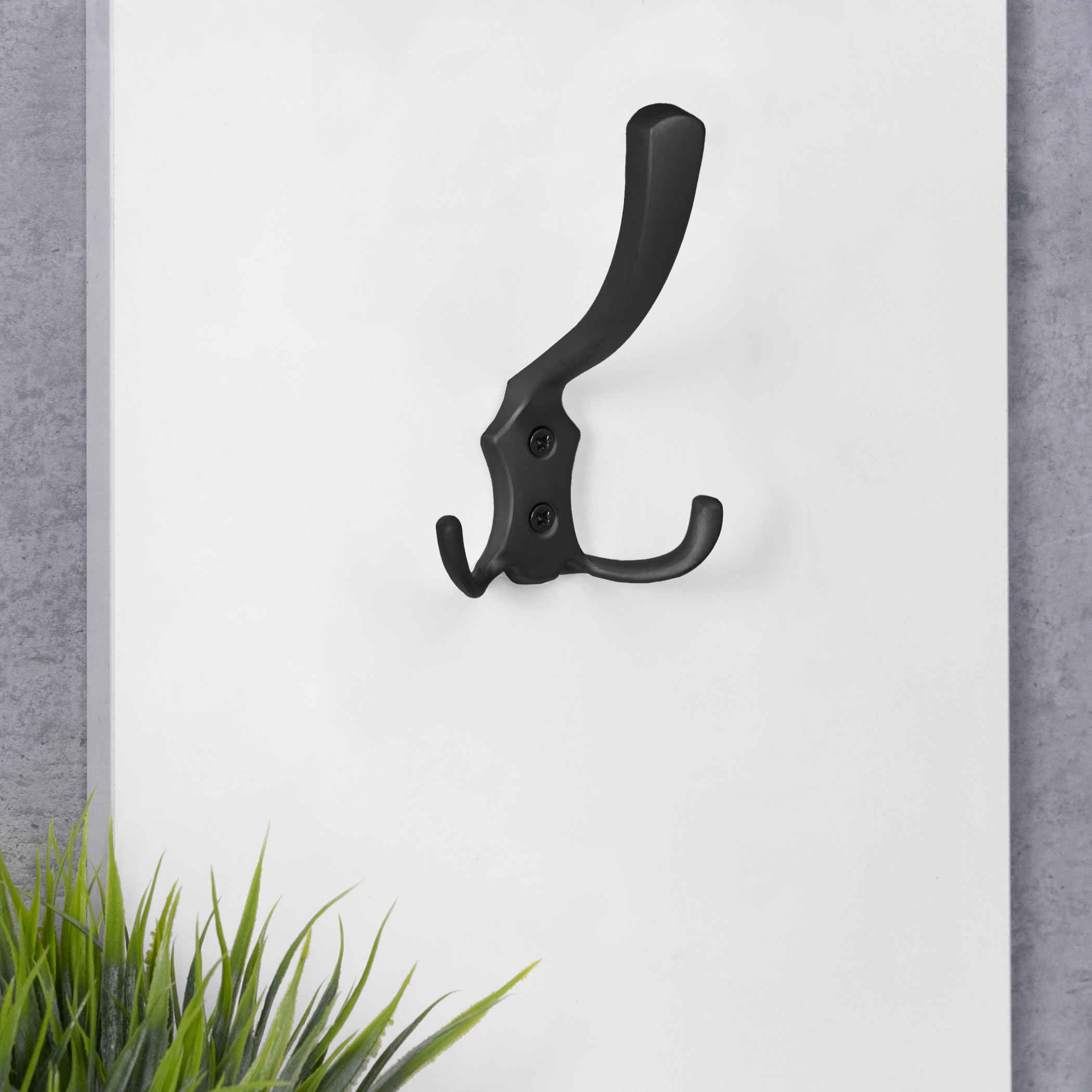 Трехрожковый металлический настенный крючок.