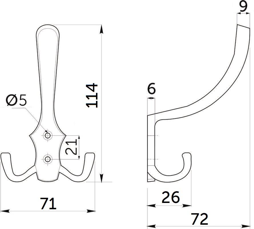 Крючок меб. трехрожковый мет. WP59 хром GRIDLI
