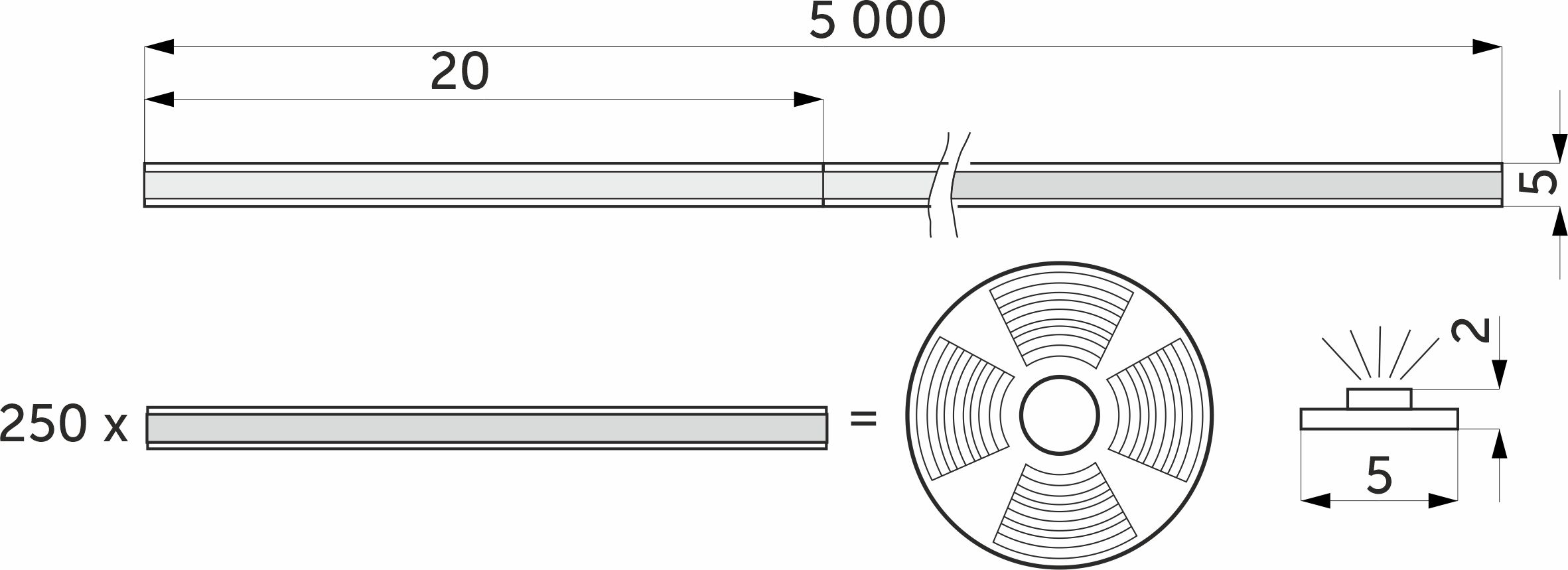 COB лента, количество диодов 400д/м, напряжение 24В, степень защиты IP20, мощность 12W/m, ширина 5 мм, теплый белый (3000K), CRI>90, 1100 Lm, узкая, 5м.