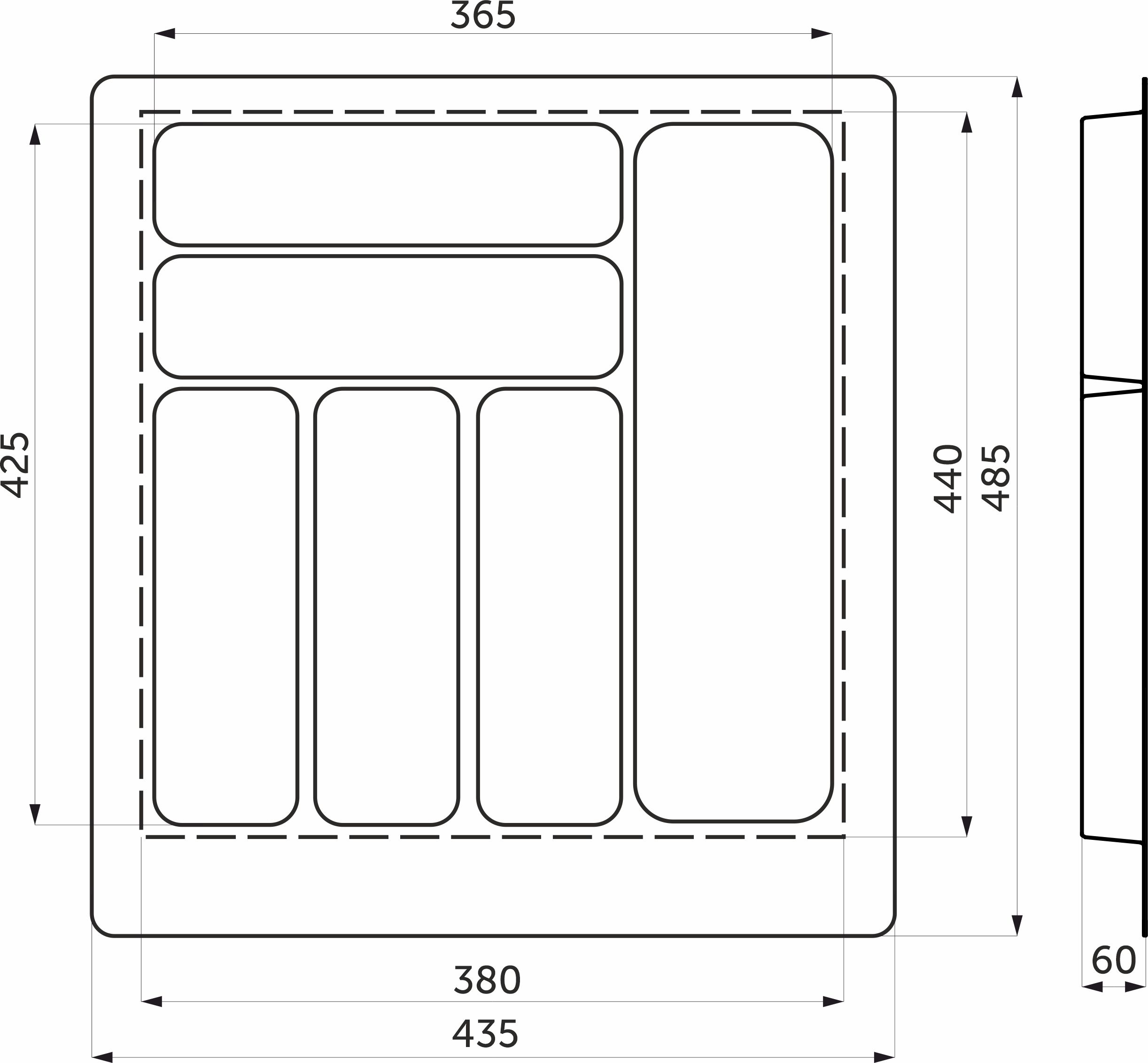 Лоток для столовых приборов 600 PIXEL 540*485, белый AKS