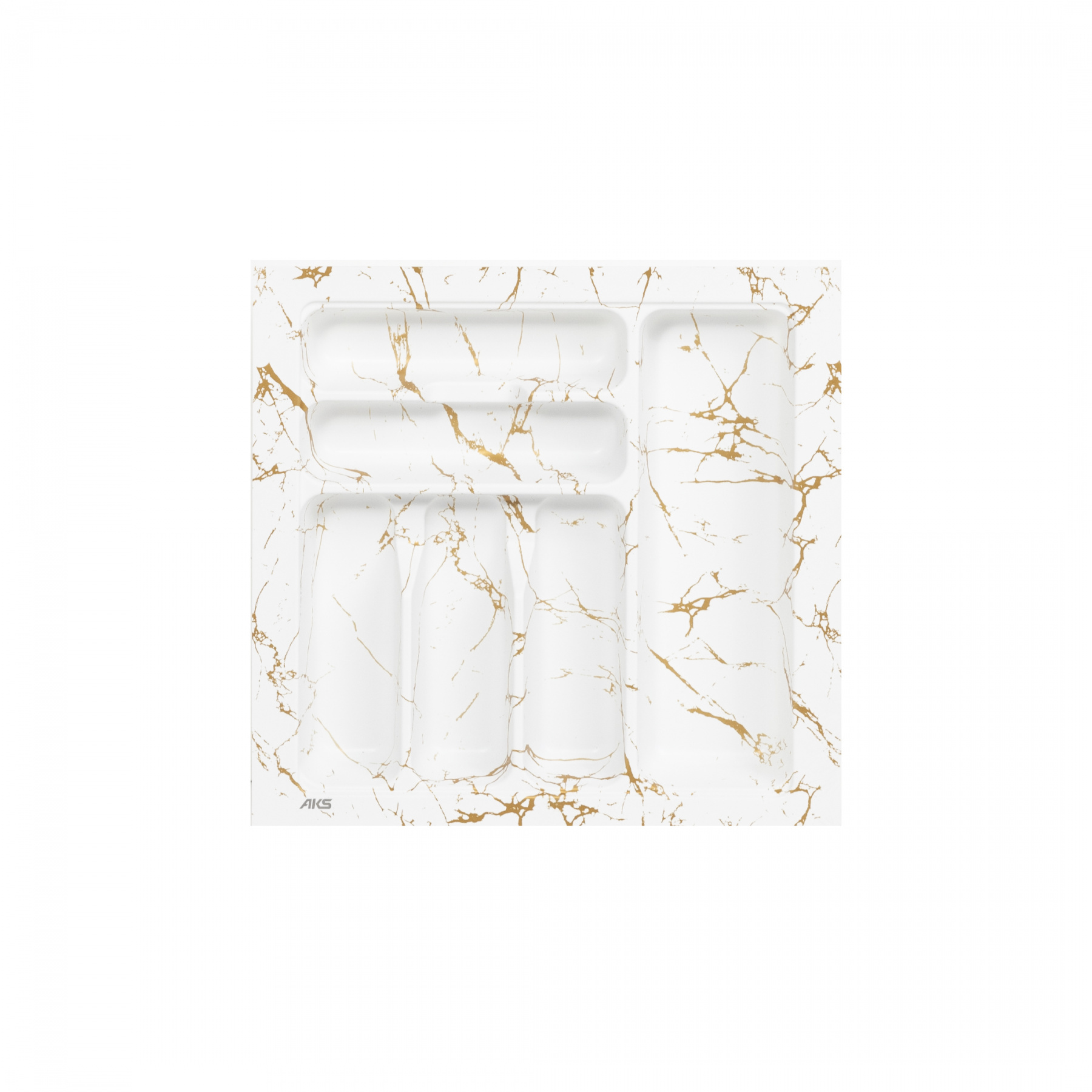 Лоток для столовых приборов 500 MARBLE 435*430, бело-золотой мрамор AKS