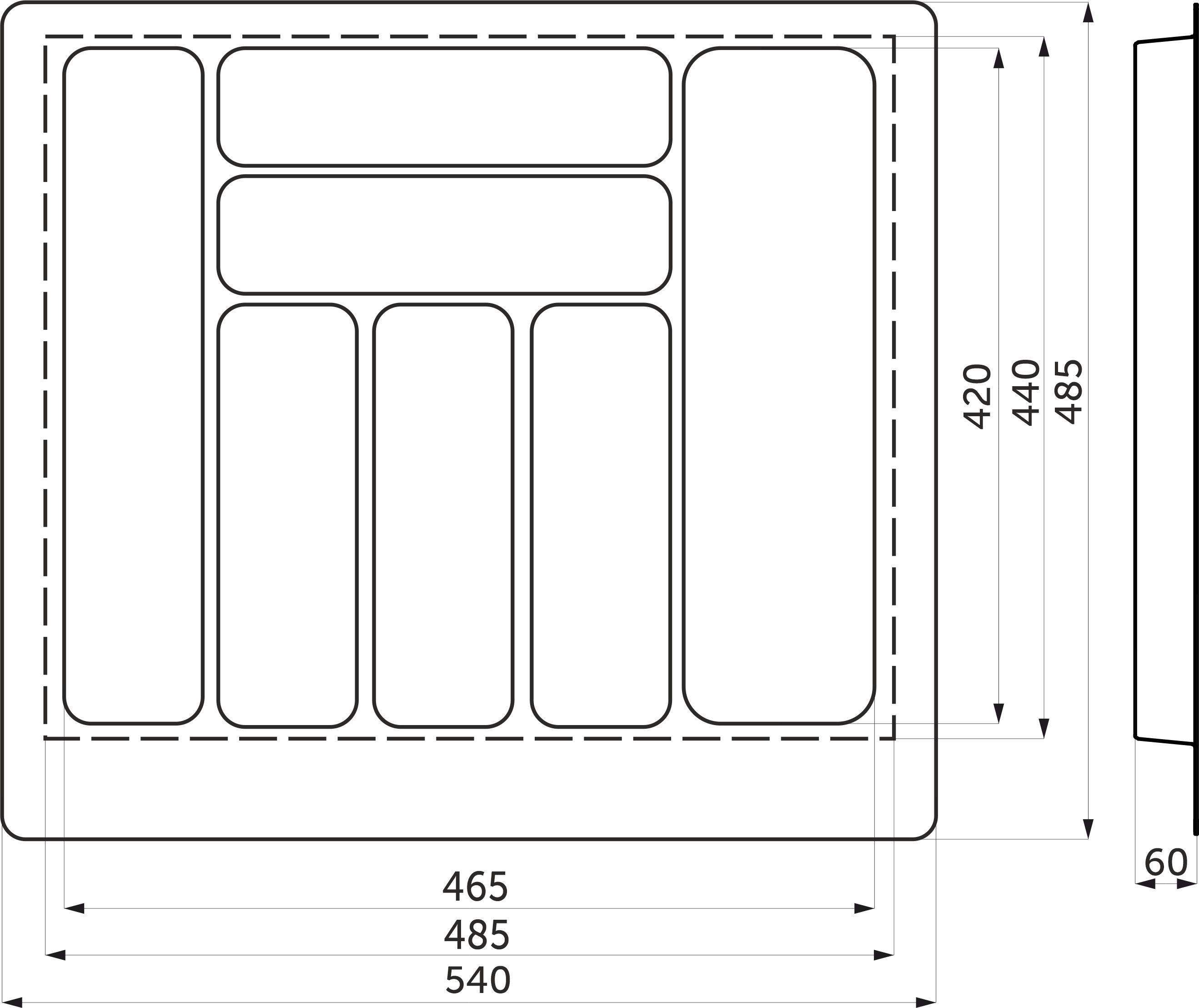 Лоток для столовых приборов 600 BASIC 540*485, белый AKS