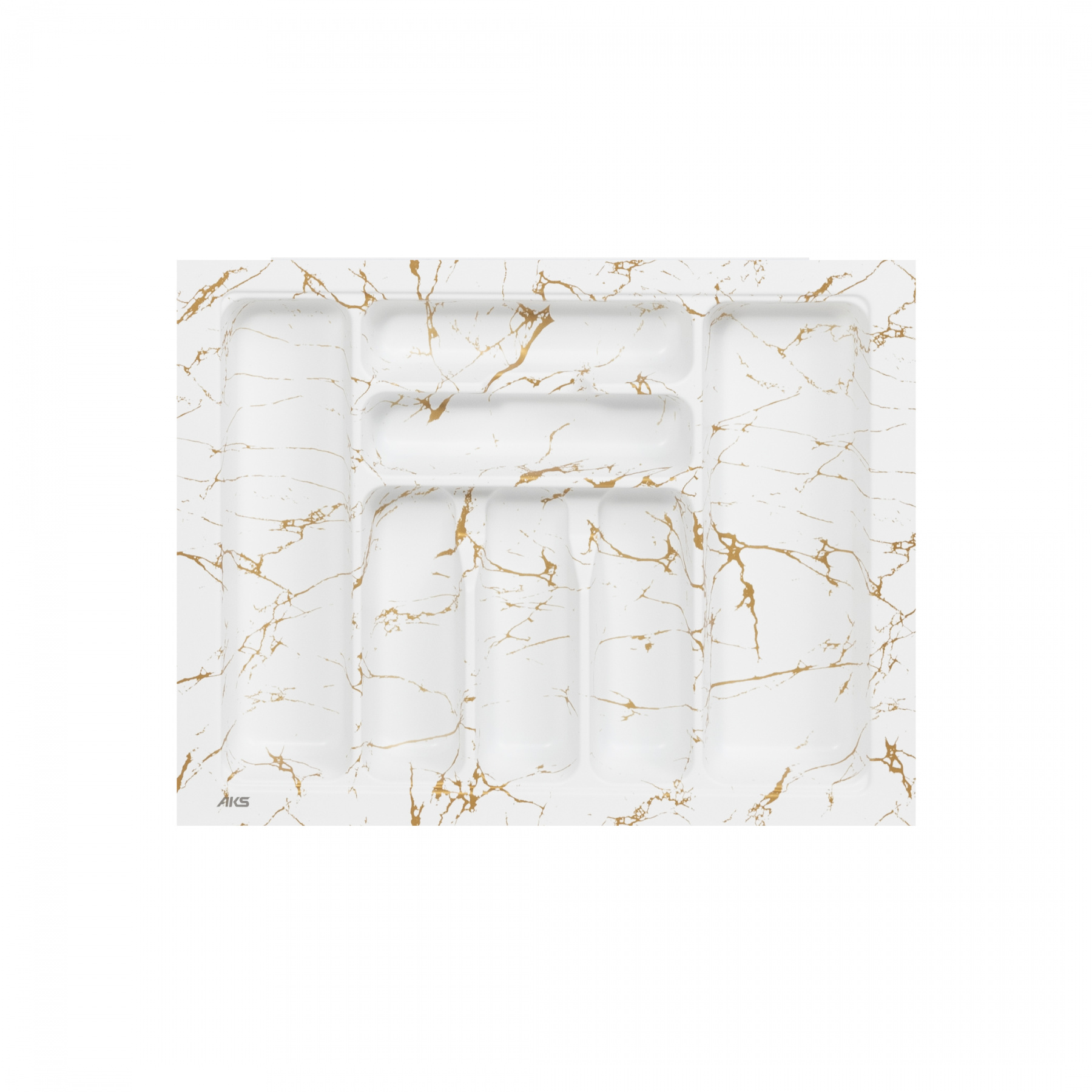 Лоток для столовых приборов 600 MARBLE 540*430, бело-золотой мрамор AKS