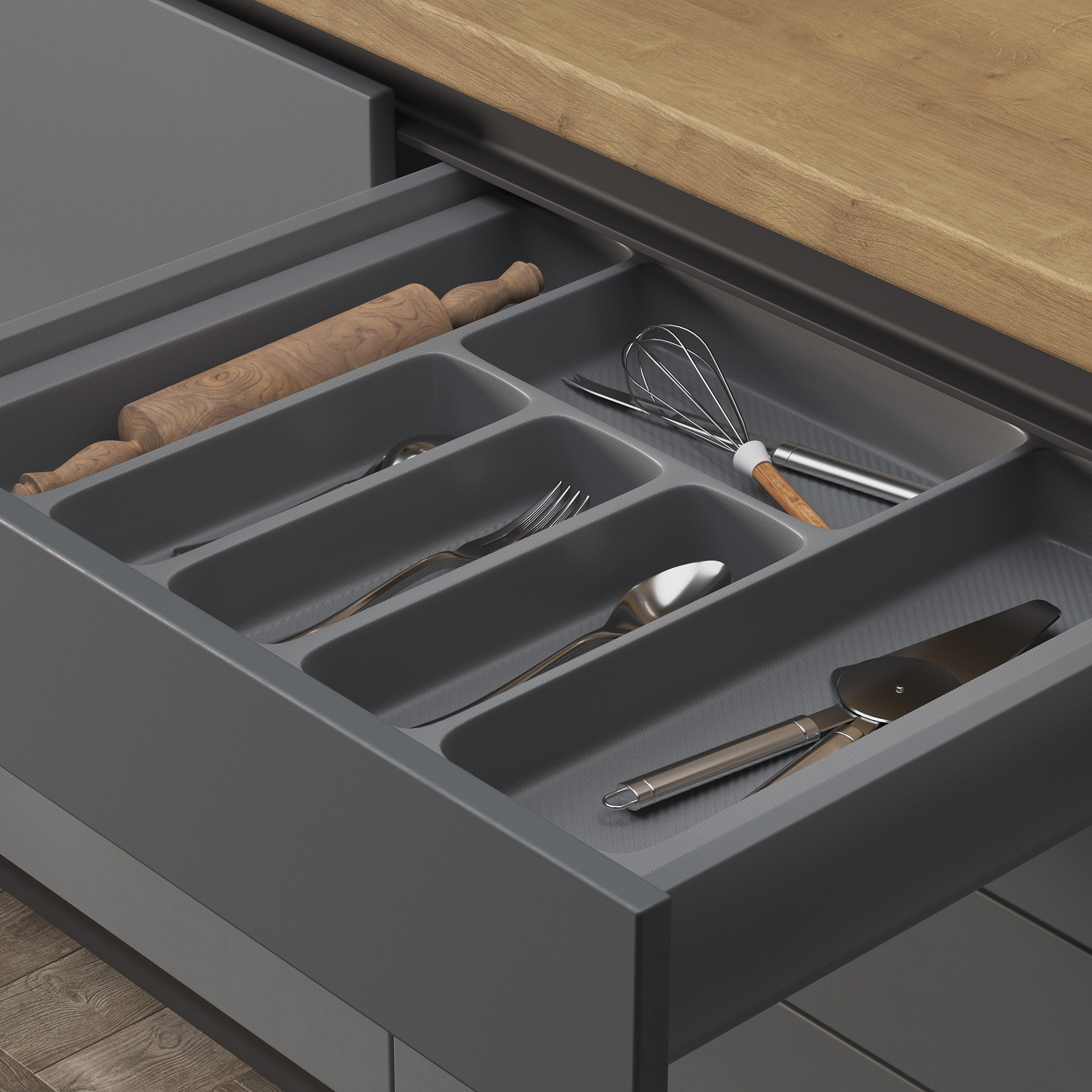 Лоток для столовых приборов 500 TR-01 (440*495*45), серый GRIDLI