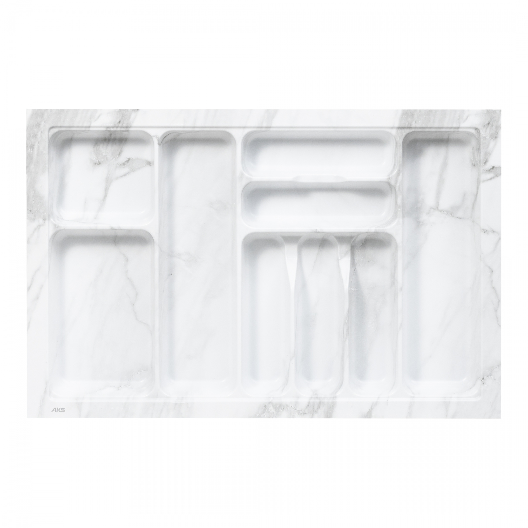 Лоток для столовых приборов 800 MARBLE 735*485, бело-серый мрамор AKS