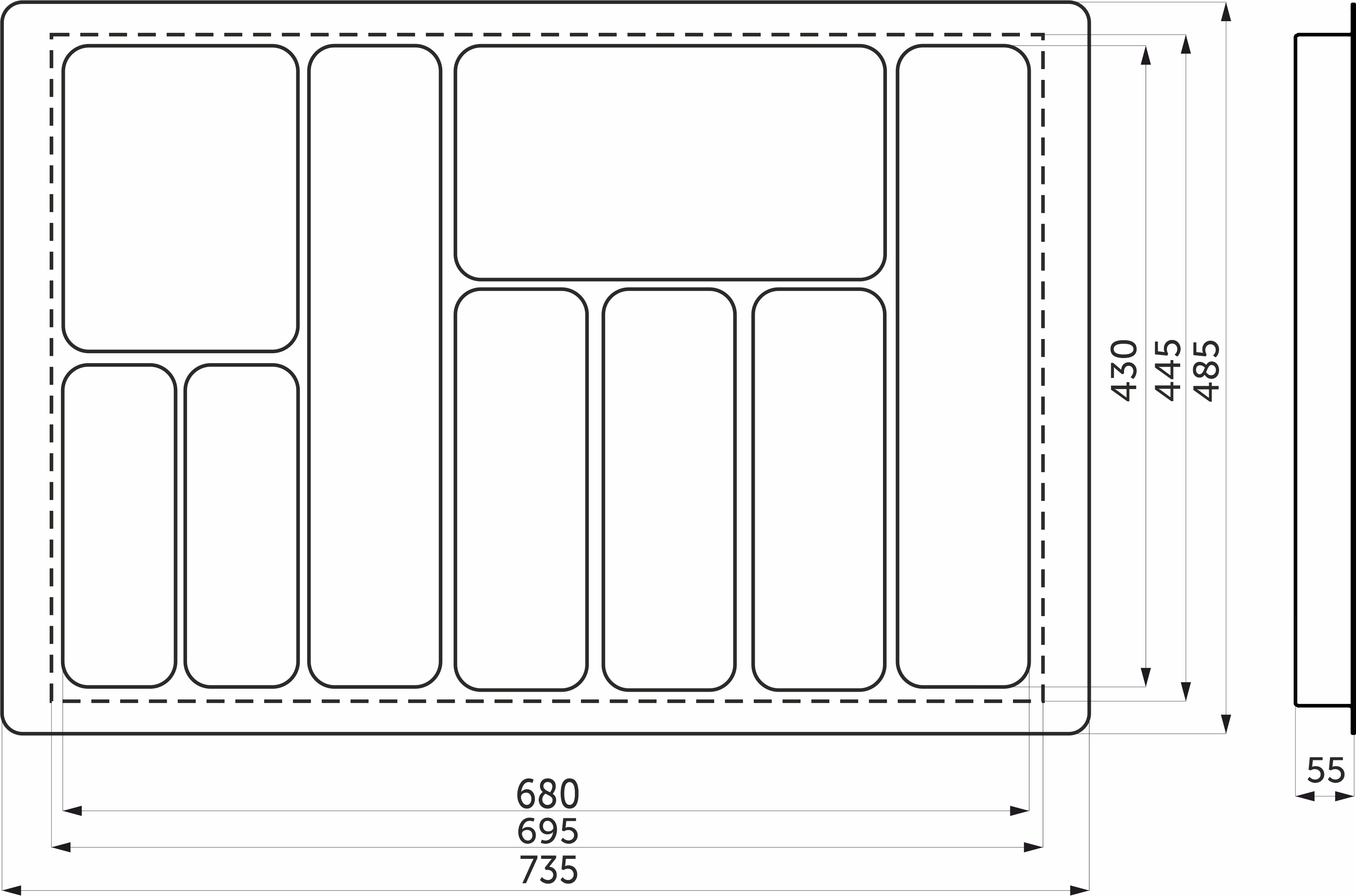- возможна установка в ящик глубиной от 440 мм до 485 мм за счет возможности подрезки.