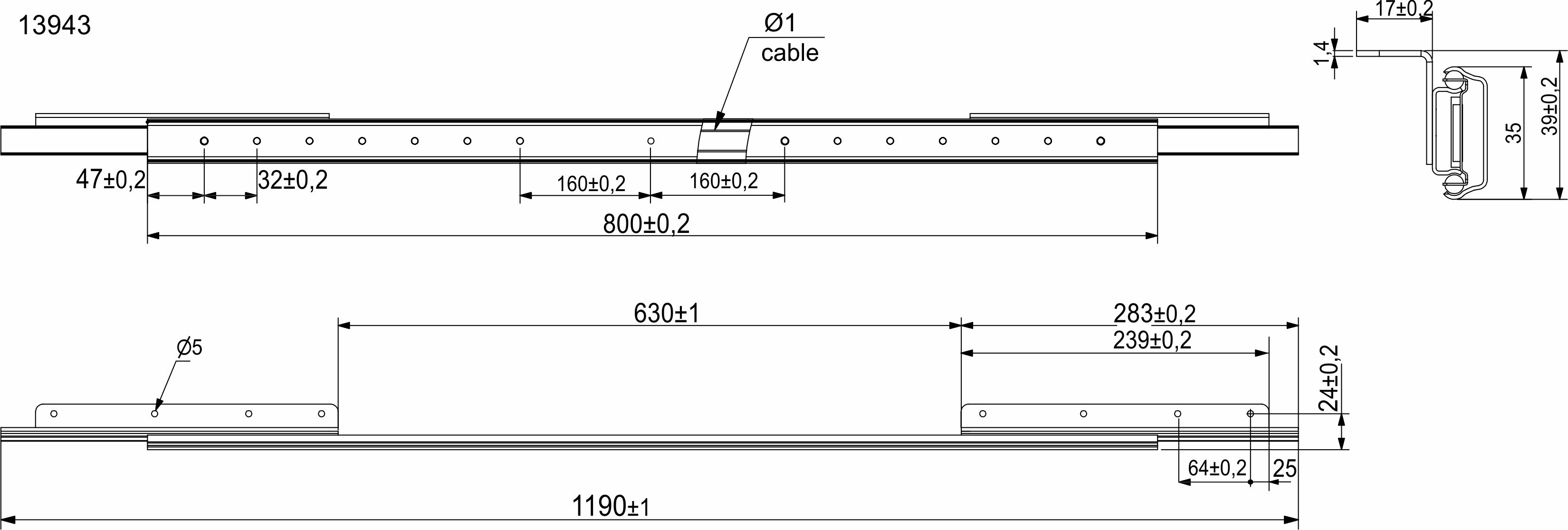 Механизм для раздвижных столов внешний синхронный со стопором L-1200мм AKS