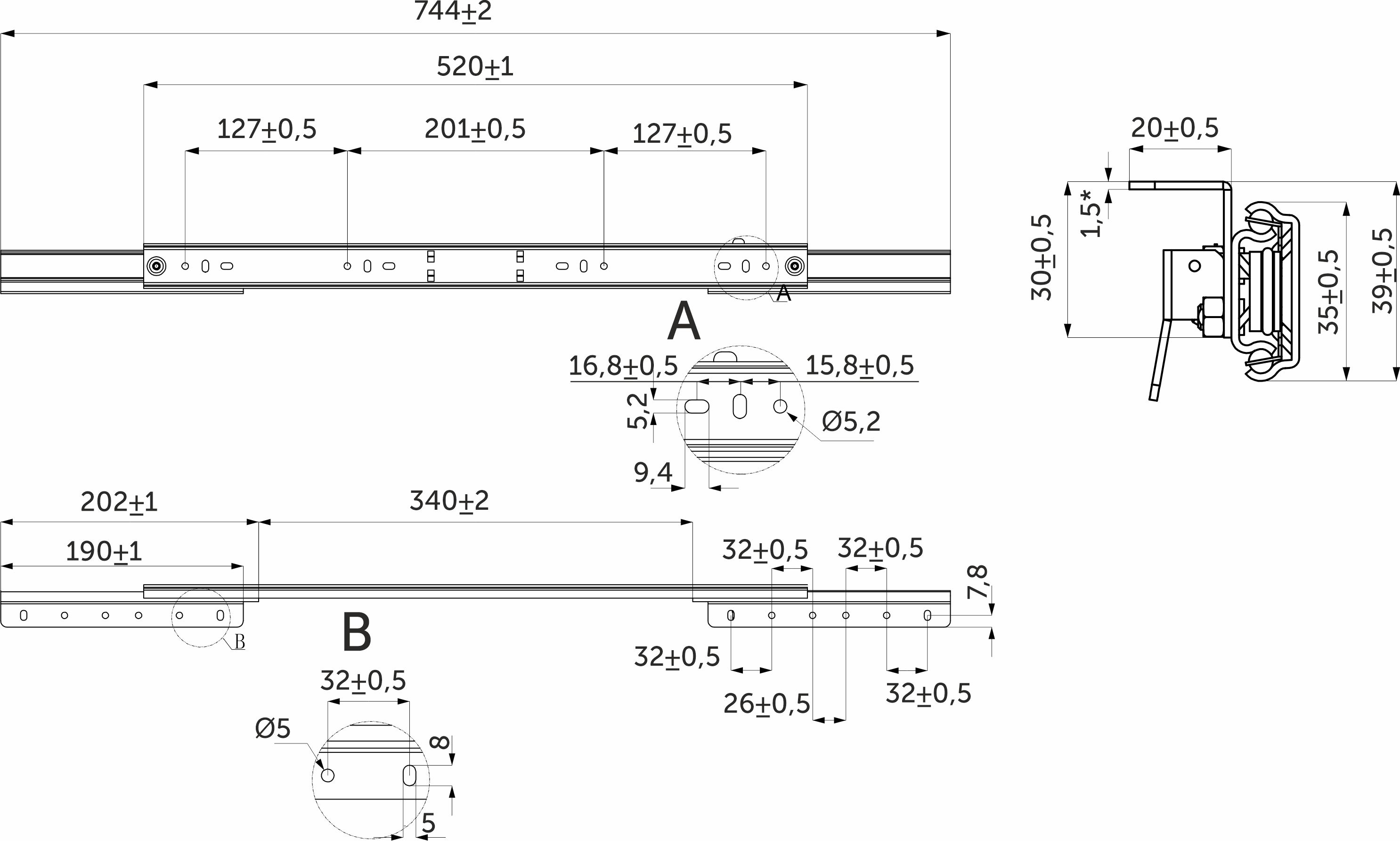 Механизм для раздвижных столов внешний синхронный со стопором L-520 мм AKS