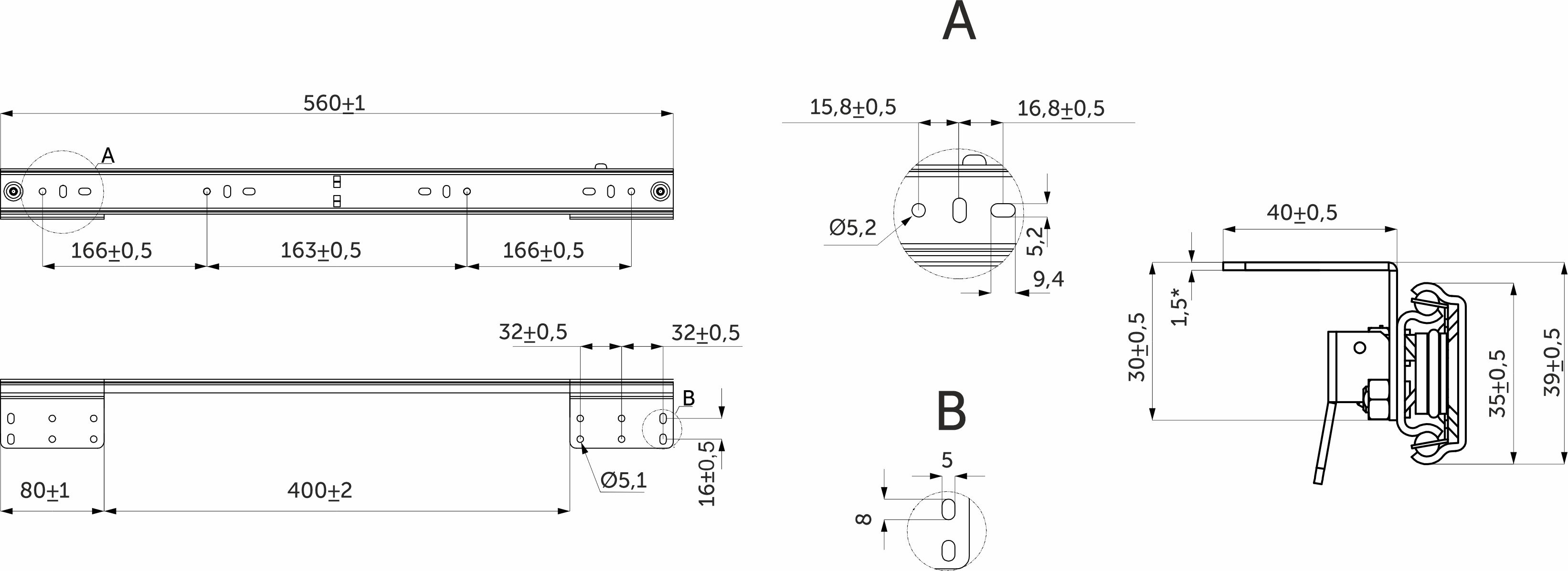 Механизм для раздвижных столов внутренний синхронный со стопором L-560 мм AKS