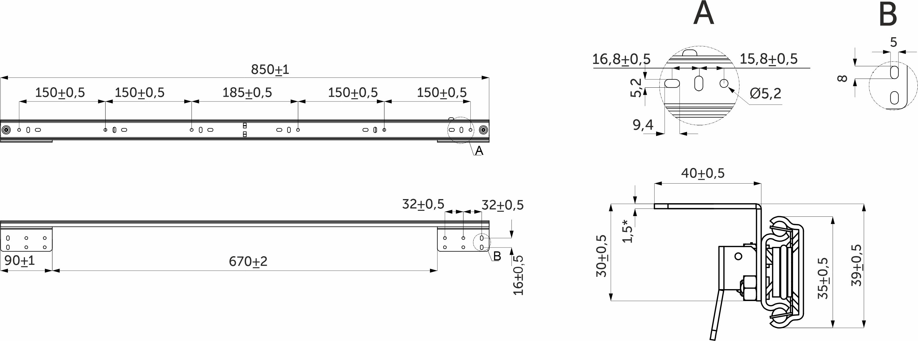 Механизм для раздвижных столов внешний синхронный со стопором L-700 мм AKS