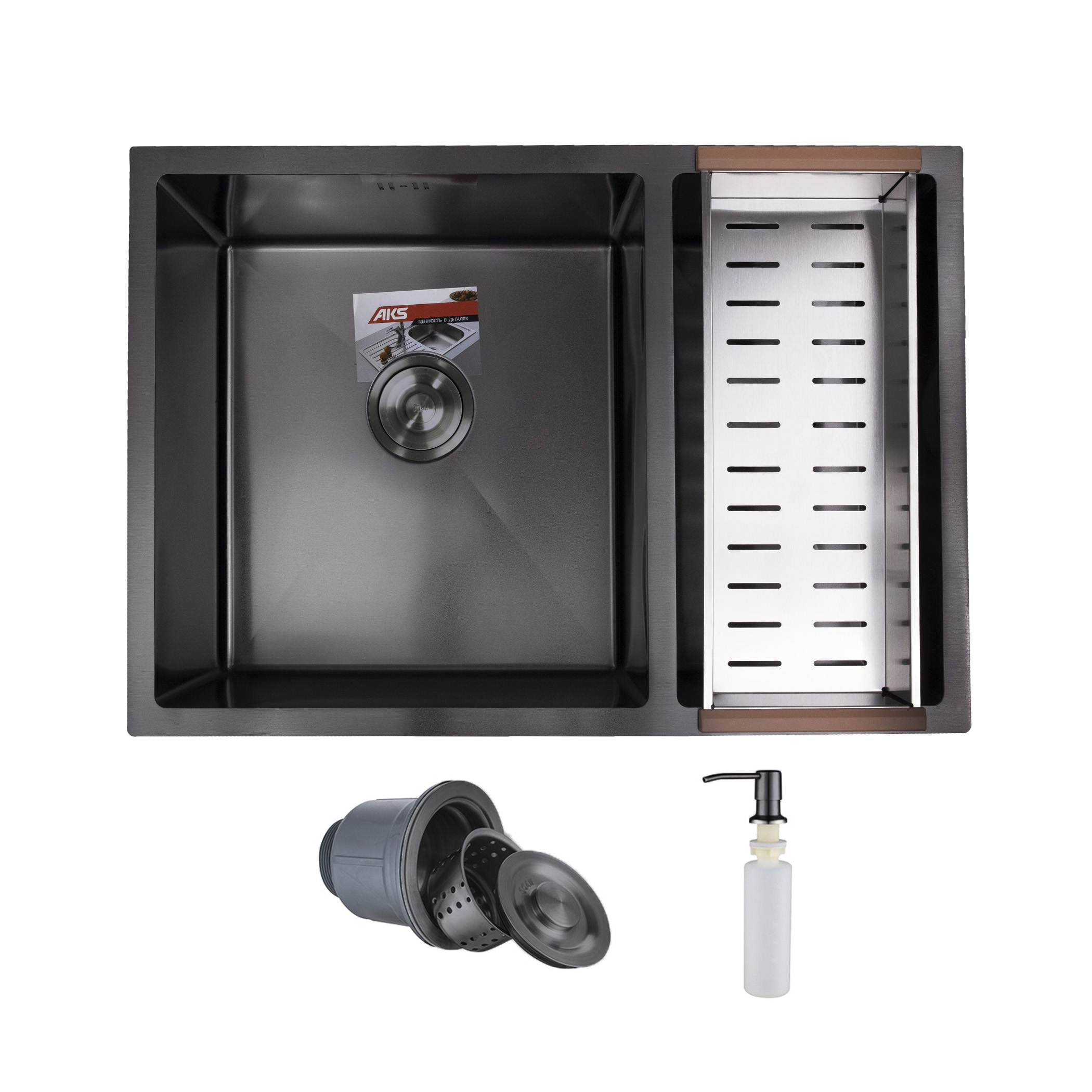 Мойка н/сталь, прямоугольная одночашевая, 570*460мм, черный, универсальная, AKS (3,2мм)