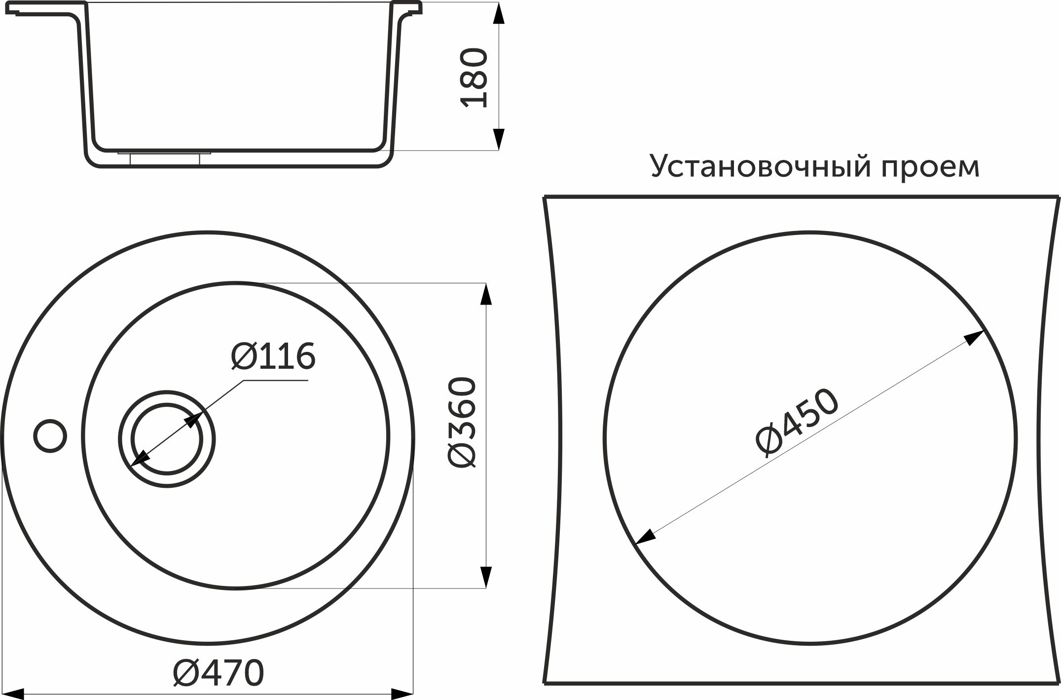 Мойка каменная, круглая одночашевая, GS-0, d470 мм, темно-серый, врезная, Gamma Stone
